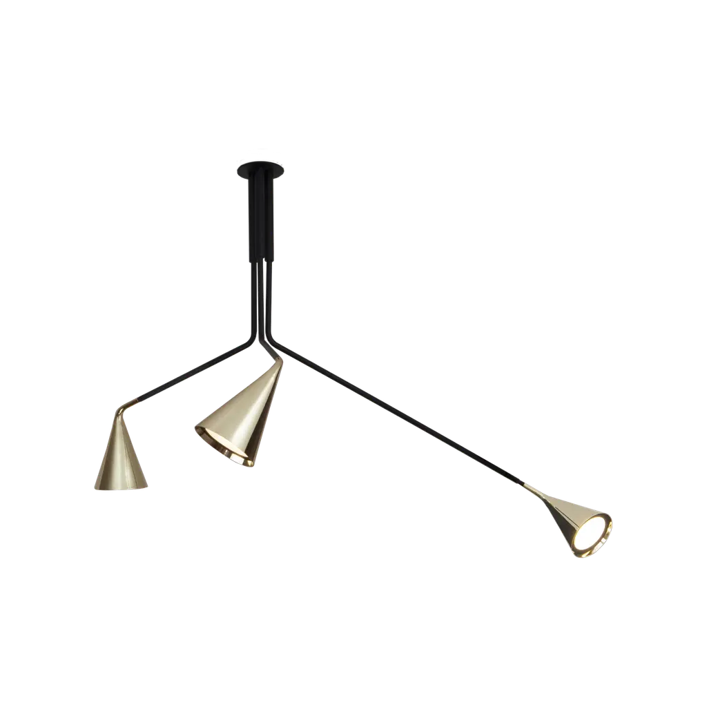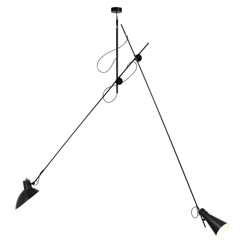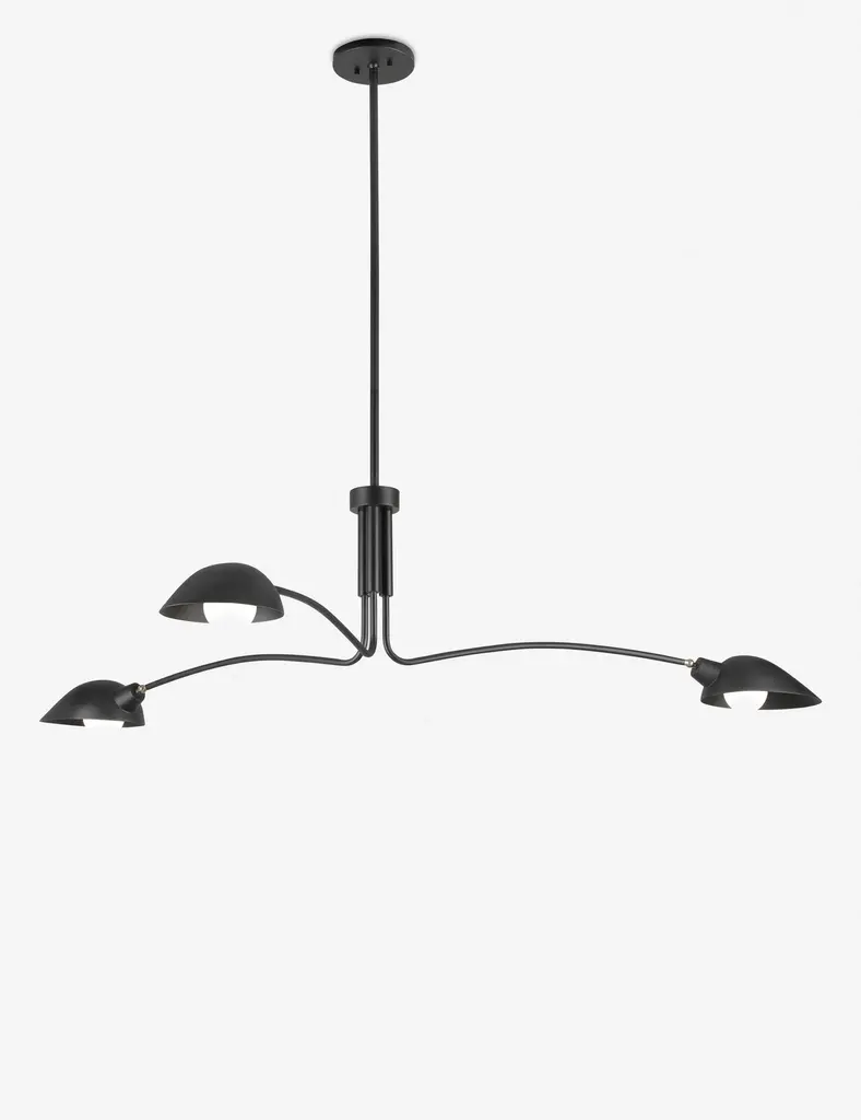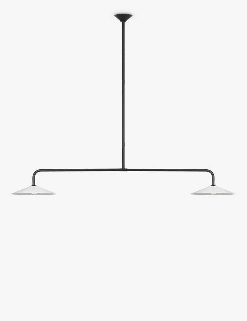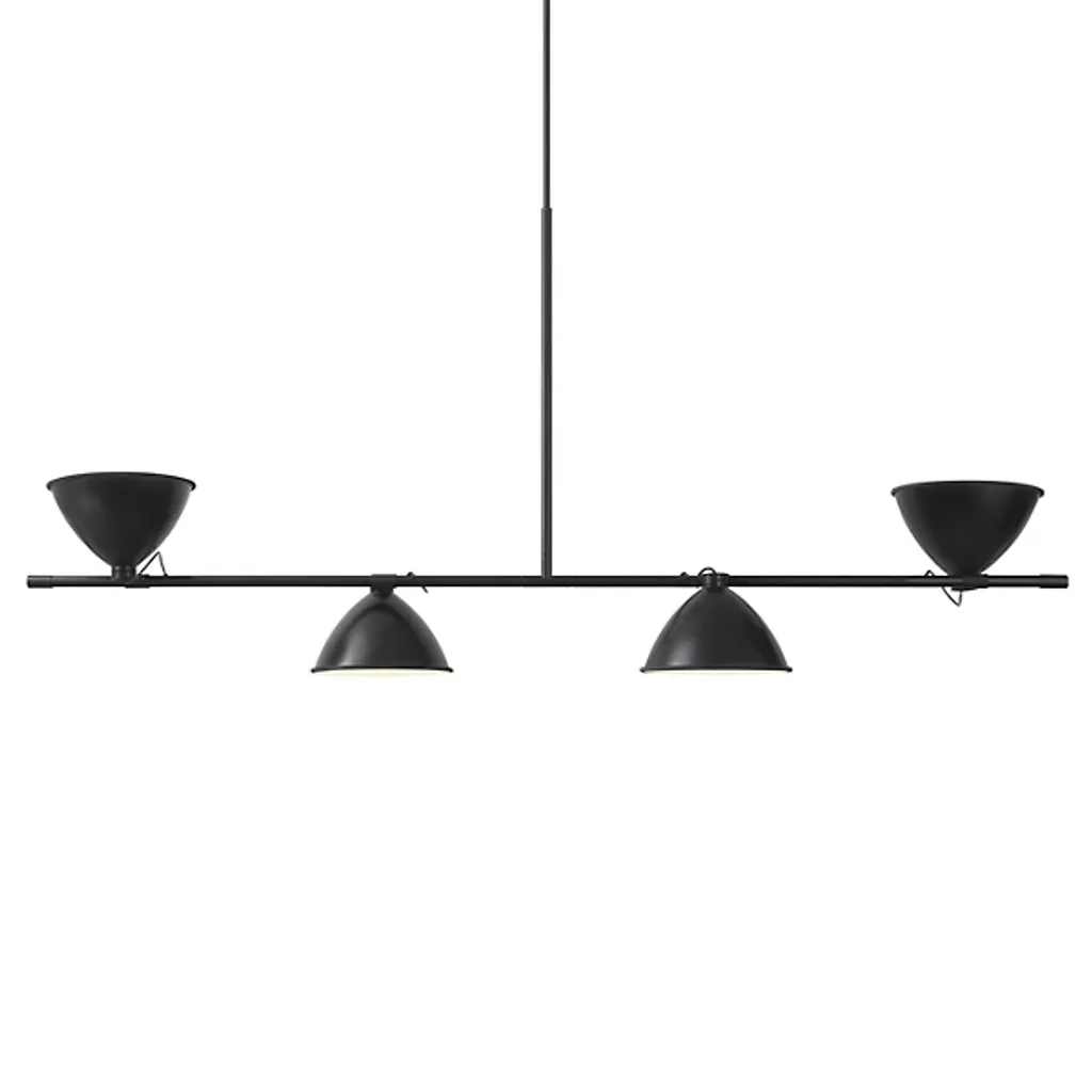 The Chandelier is a striking lighting fixture designed for spaces with high ceilings. As the largest model in the Bonnet collection, it serves as a perfect centerpiece above expansive dining tables or in large living areas. The Bonnet Copenhagen SC92 Chandelier’s standout feature is a set of curved aluminum shades that can rotate up to 180 degrees, allowing for customizable light direction—whether upwards, downwards, or at various angles. The chandelier’s sleek silhouette balances industrial materials, such as painted and anodized aluminum, with refined detailing. Available in black or a bronzed-black finish.