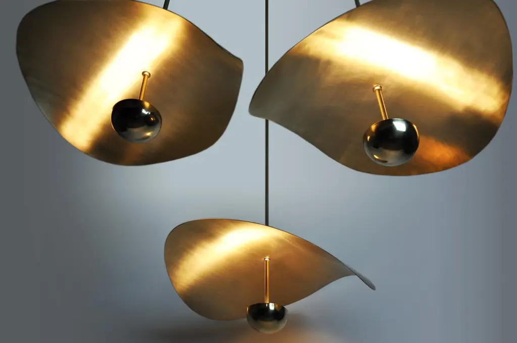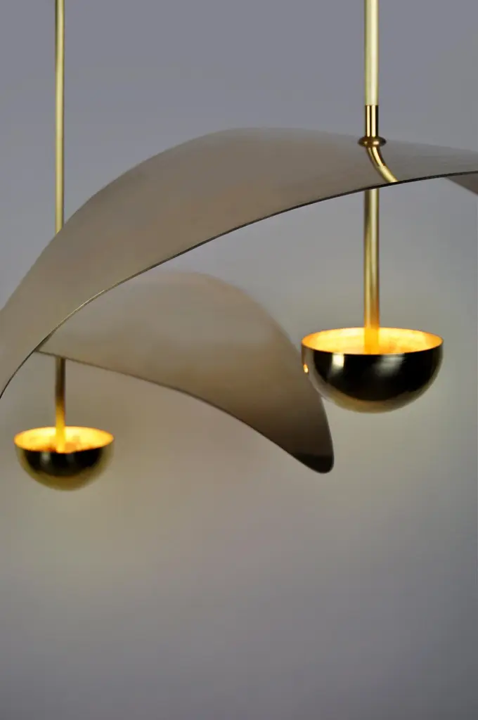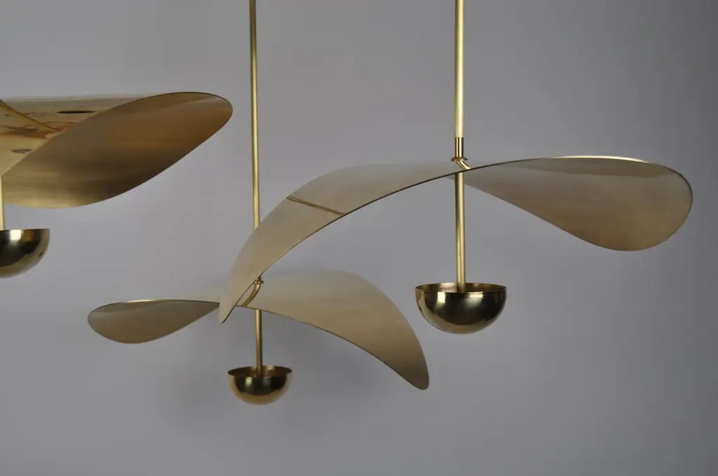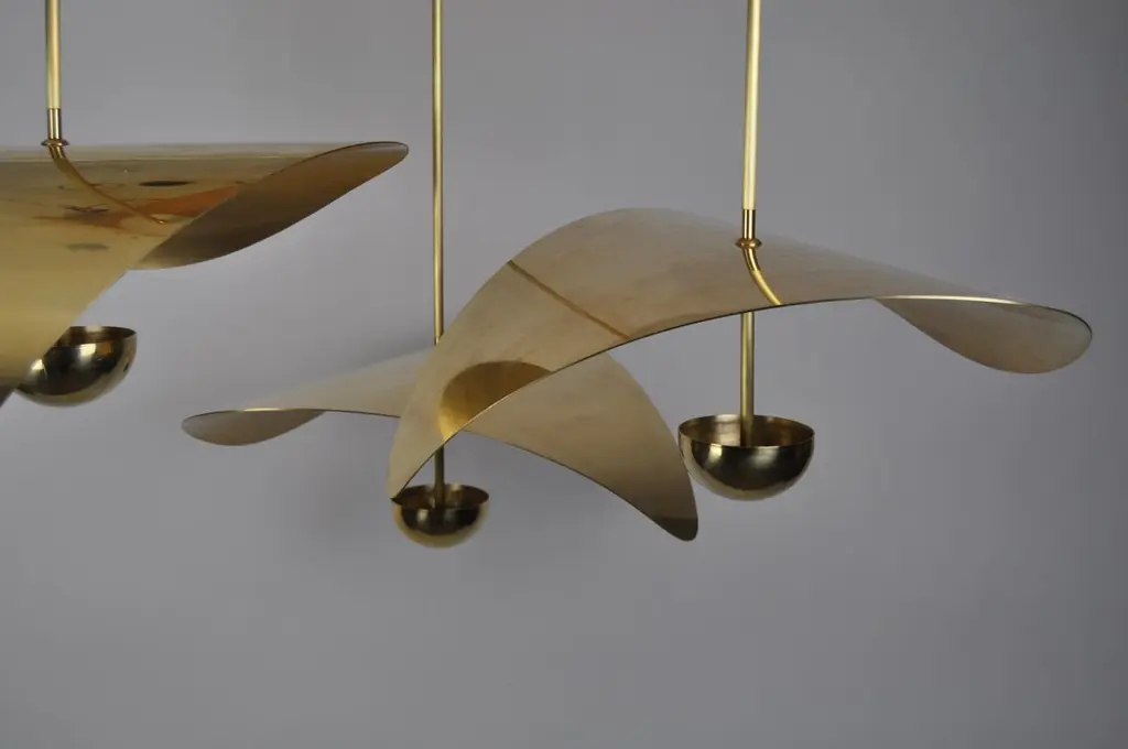 The Bonnie range is designed around the stylized form of a Saffron flower, known around the world for its valuable beauty, fragrance and essence.Each organic flower-like form is stamped, moulded and polished by hand from solid brass or stainless steel (depending on the required finish). They reflect a hidden LED light source, resulting in a warm and decorative glow. As this piece is handmade to order it is fully customisable in size, scale, hanging and arrangement on request. The given height excludes the stem lengths which are made to order.