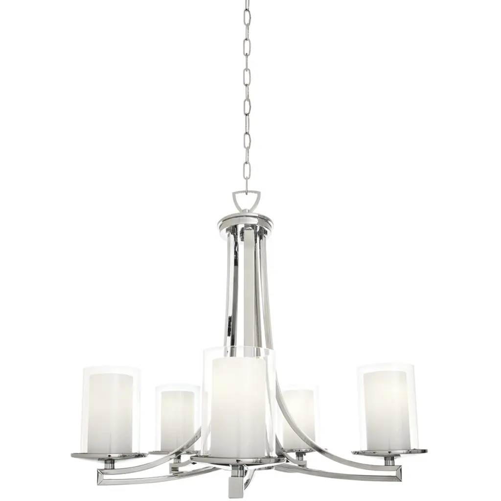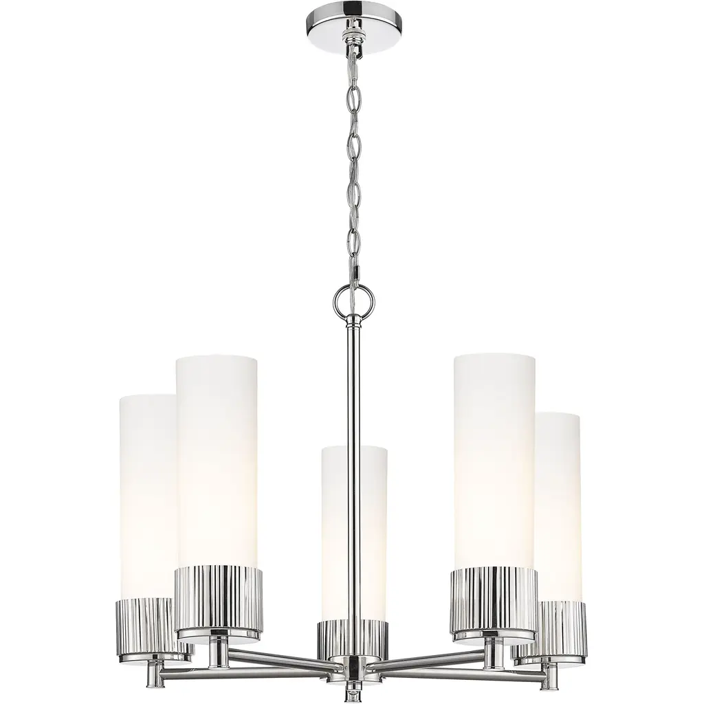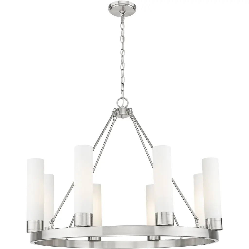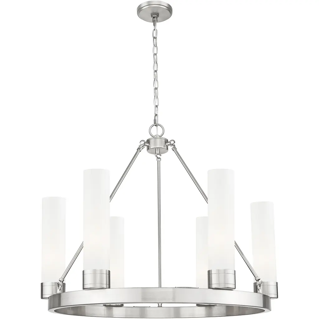Boreas 6 Light 29 Inch Polished Nickel Chandelier Ceiling Light In White Glass