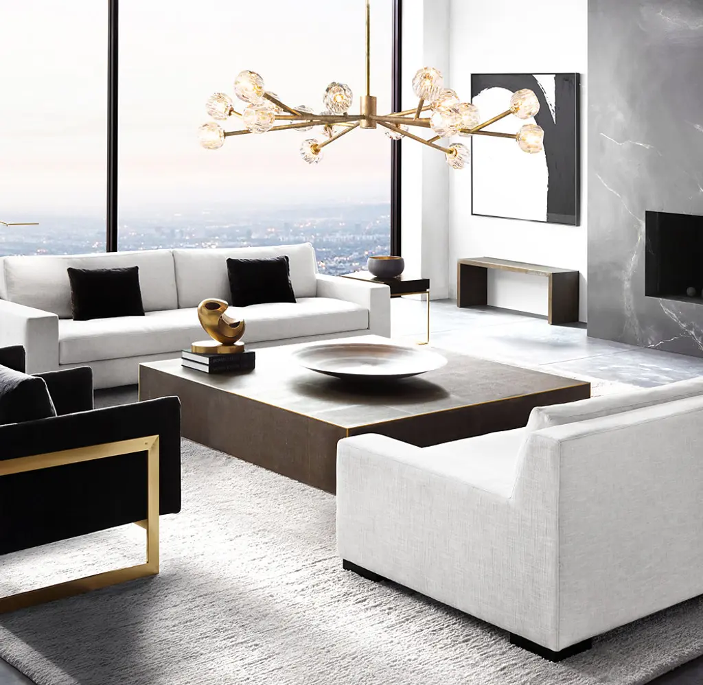 Crafted of solid brass and crystal glass, designer Jonathan Browning's sculptural fixture is a testament to his passion for luxe materials and superior craftsmanship. Evoking the minimalist spirit of 1960s design, each finely faceted sphere is ground and polished by hand to reflect and refract the light. SHOP THE ENTIRE COLLECTION