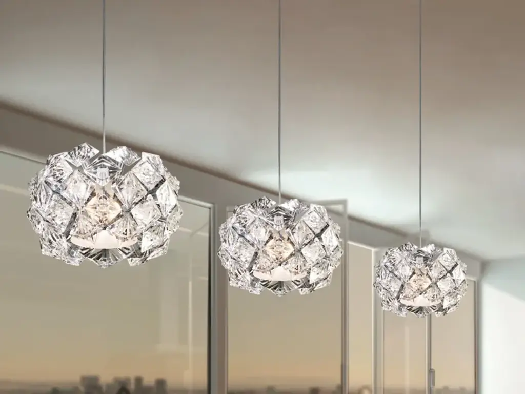 Crafted of solid brass and crystal glass, designer Jonathan Browning's sculptural fixture is a testament to his passion for luxe materials and superior craftsmanship. Evoking the minimalist spirit of 1960s design, each finely faceted sphere is ground and polished by hand to reflect and refract the light.ALSO AVAILABLE IN SMOKE GLASSSHOP THE ENTIRE COLLECTION
