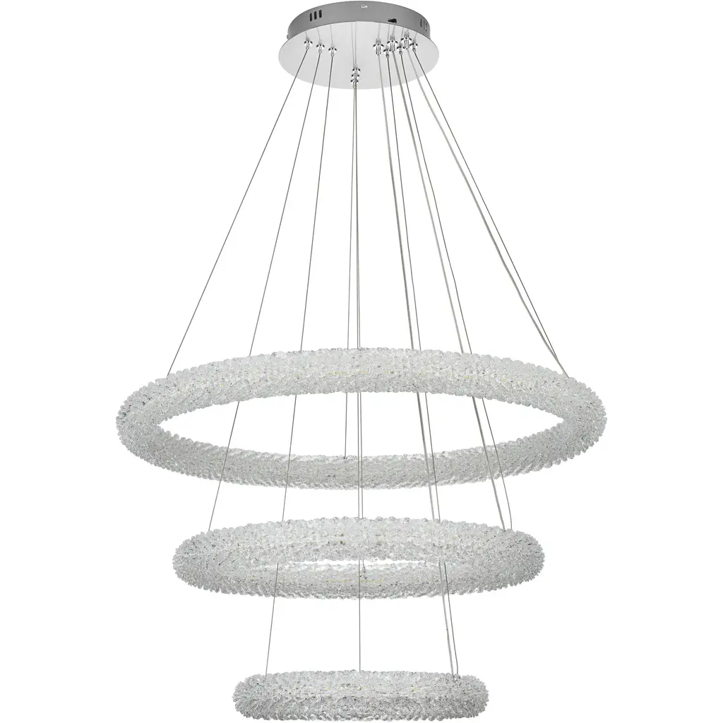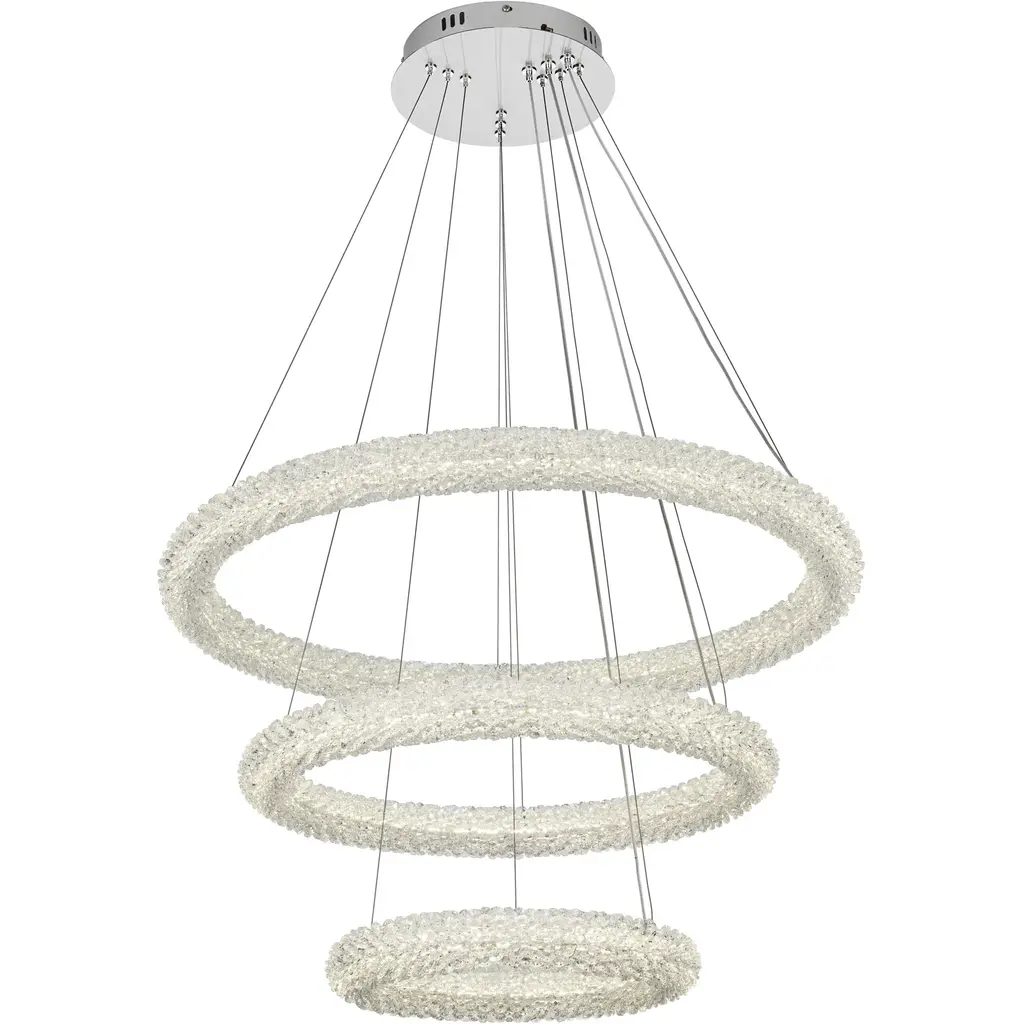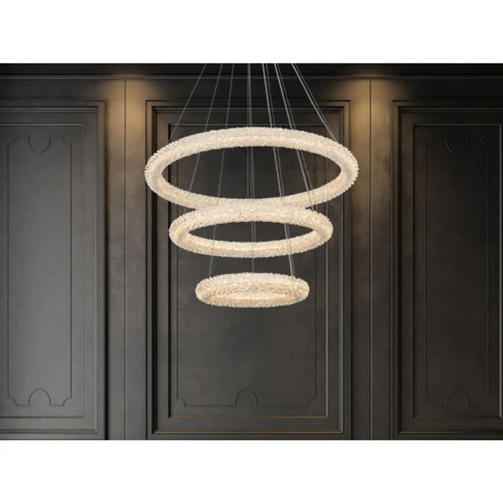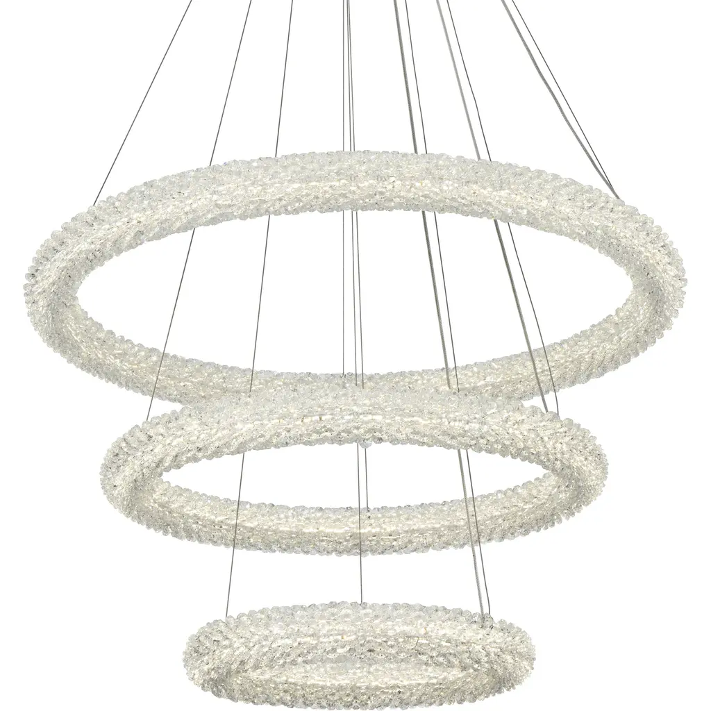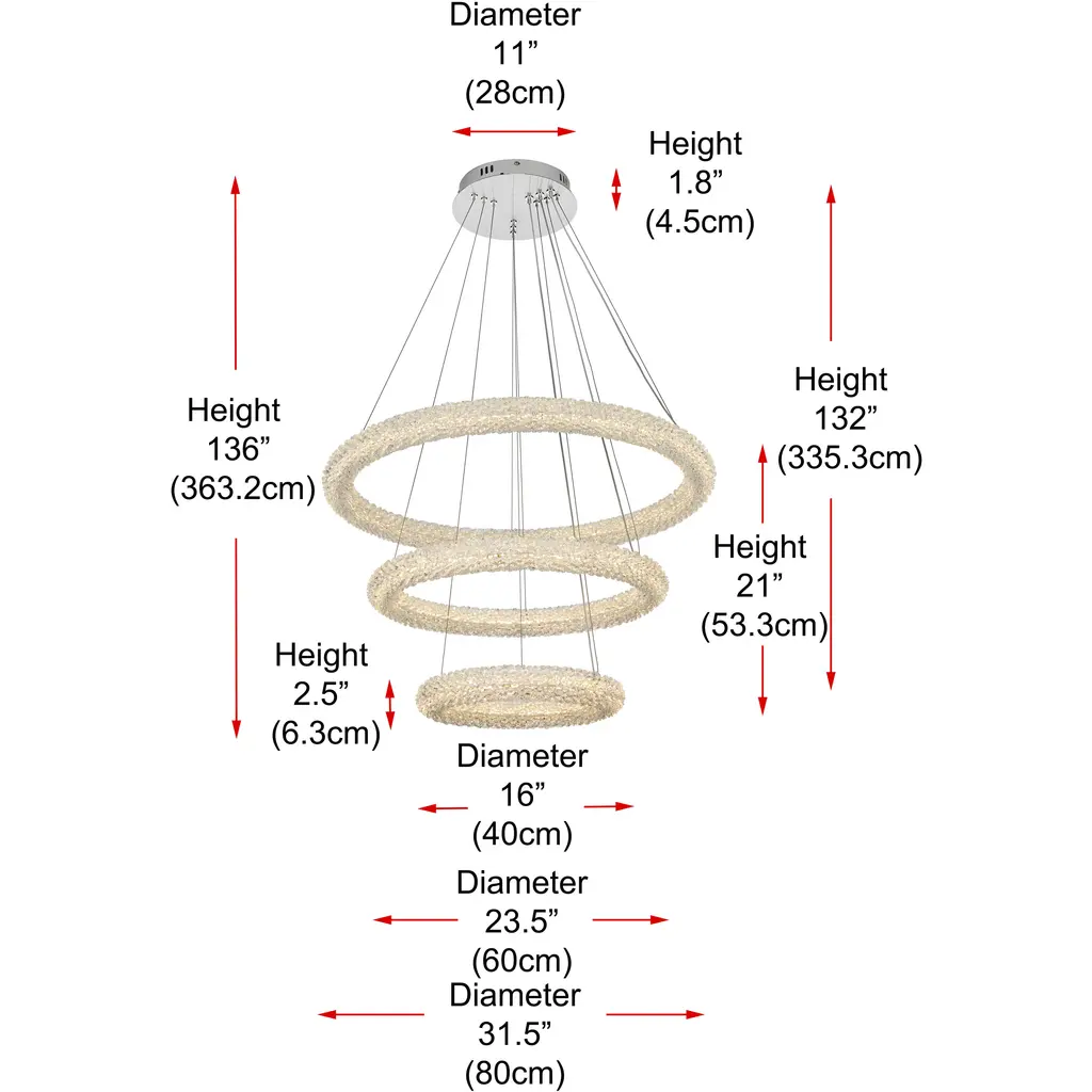 Illuminate your space with the enchanting Bowen 32 inch LED three-tiered Chandelier. This light boasts an impressive LED lifespan of 20,000 hours, providing enduring brilliance for your space. No assembly required, ensuring a swift and user-friendly installation experience. Choose from three color temperatures (3000K, 4500K, 6000K) to set the perfect mood for any occasion. Crafted with durable Iron and Crystal materials for long-lasting reliability. ETL listed for safety compliance, ensuring a secure and reliable lighting solution. Integrated LED technology means you'll never have to buy bulbs, ensuring long-lasting and hassle-free illumination.