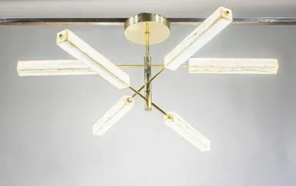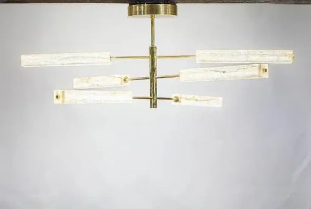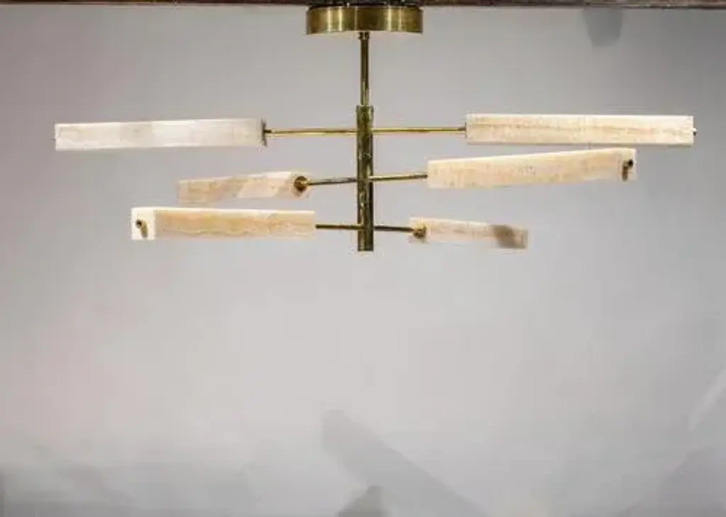 Brass And Ivory-Toned Onyx Sculptural Chandelier By Silvio Piattelli
