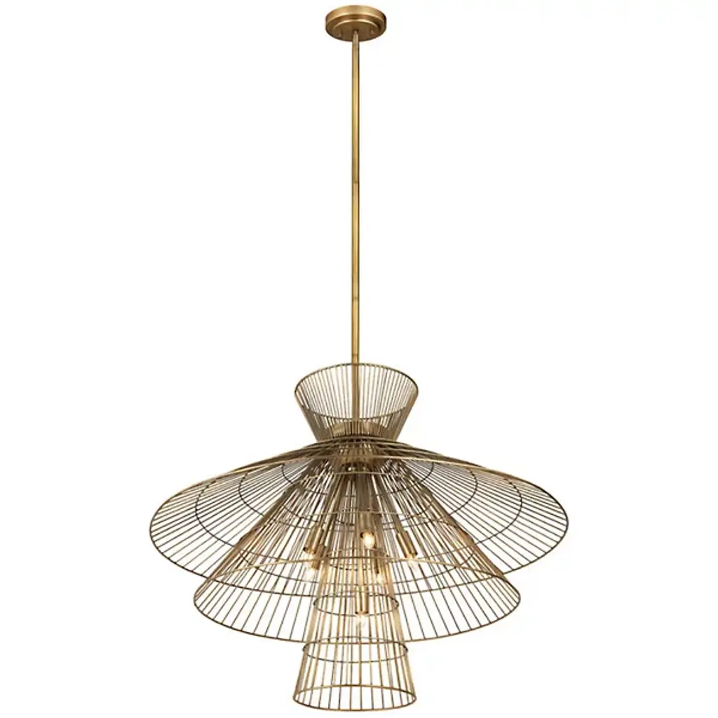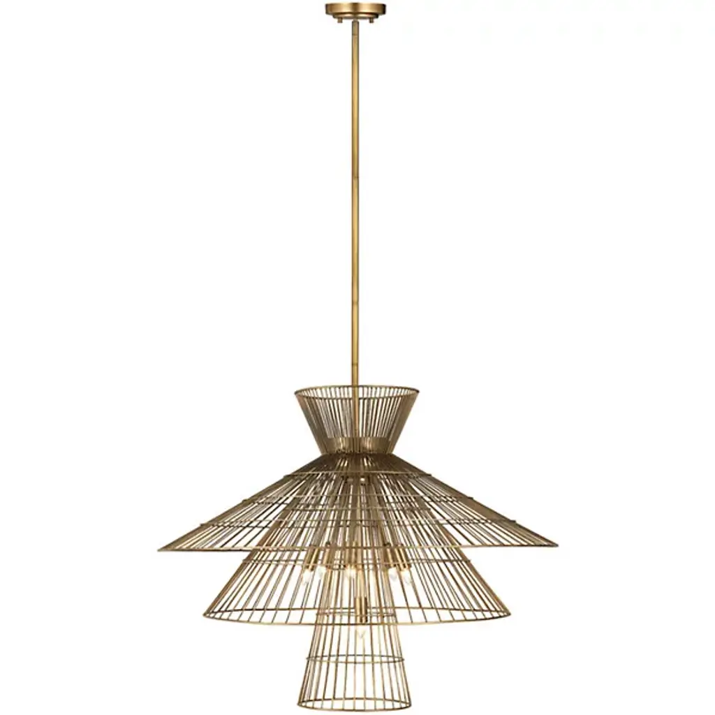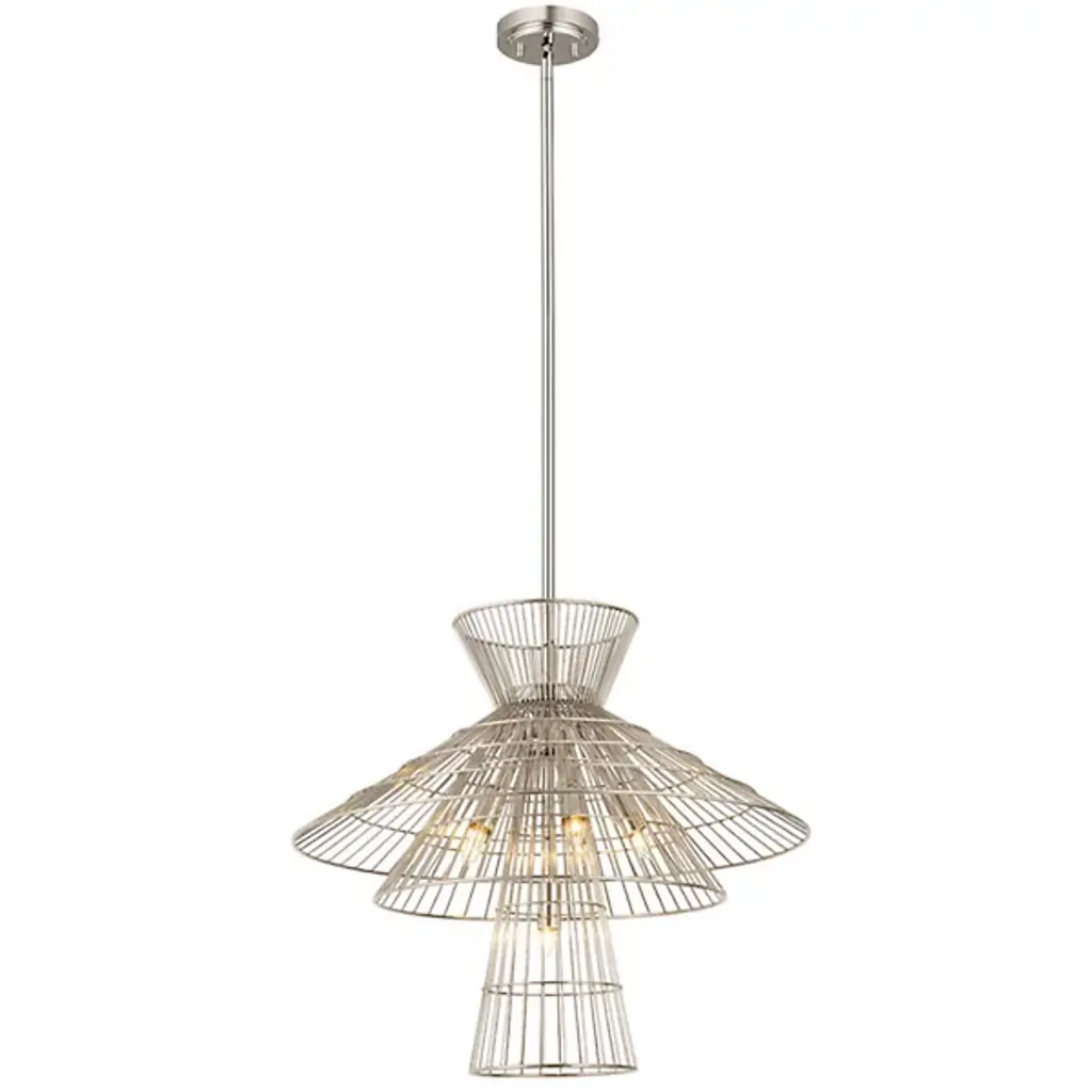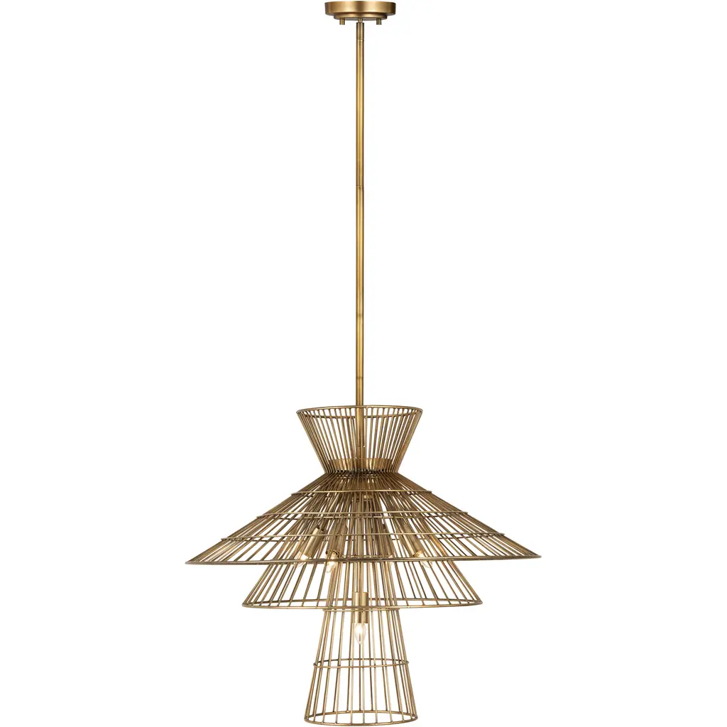 The Brennan Chandelier from Alder & Ore elevates your modern interior with a lighting fixture that exudes a cool personality and a captivating blend of contemporary and industrial design elements. This pendant is a striking addition to any space, featuring a multi-tiered geometric configuration of charming open conical shades. Its body, down rod, and canopy add a touch of sophistication, making it the perfect choice for creating a distinctive ambiance in a custom dining area, entryway, or main living space.