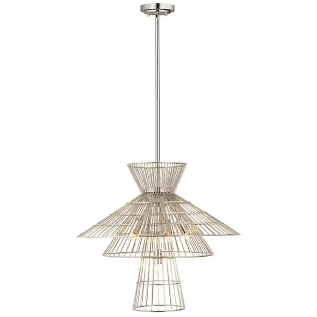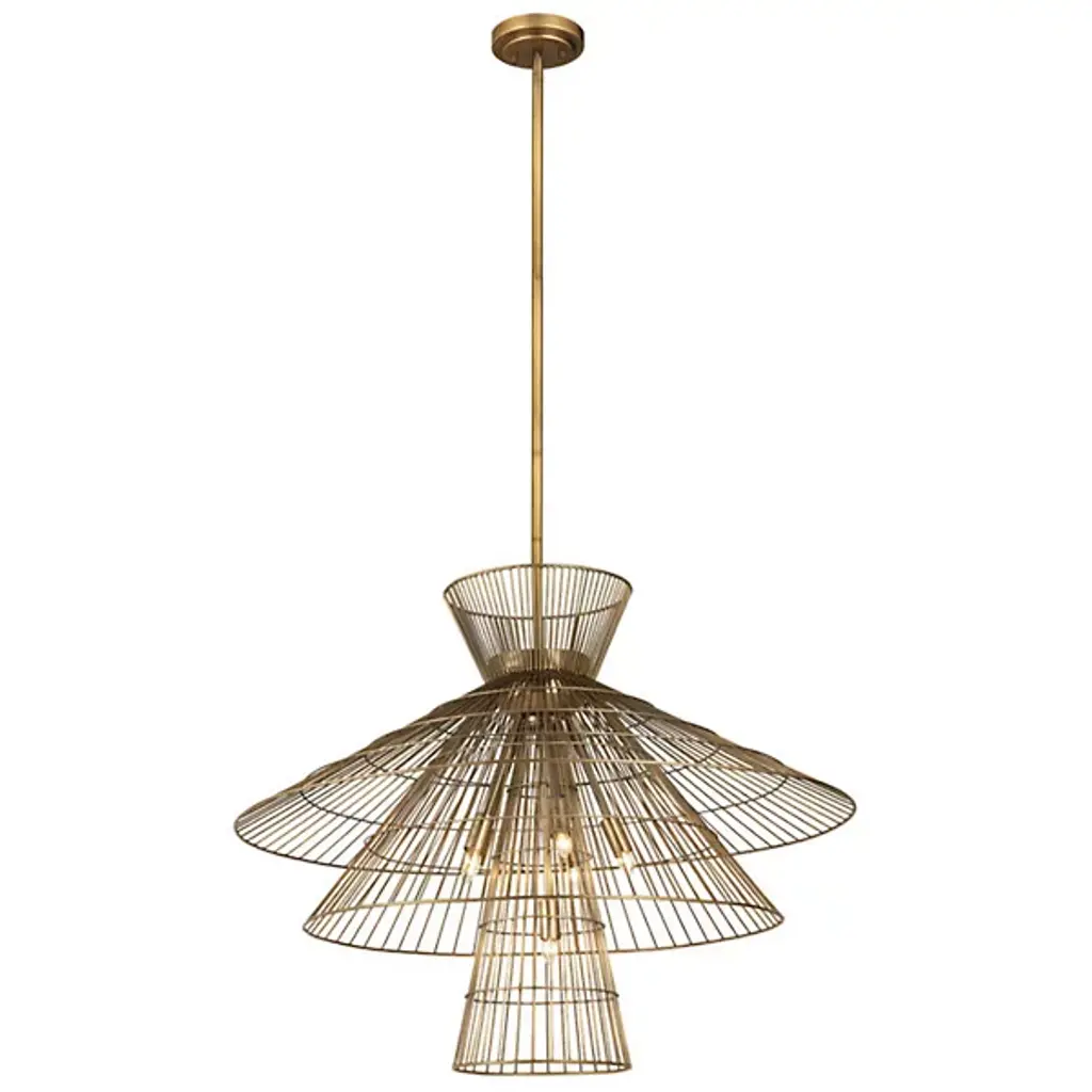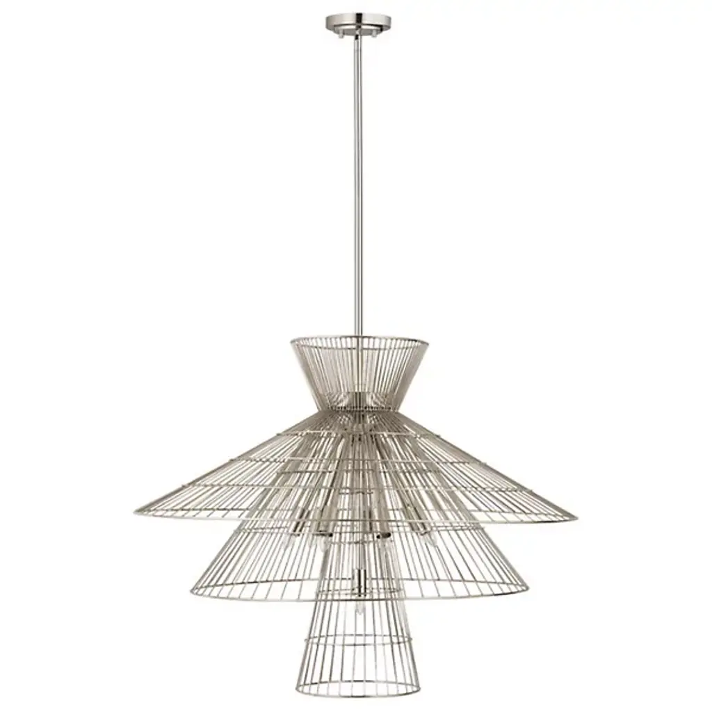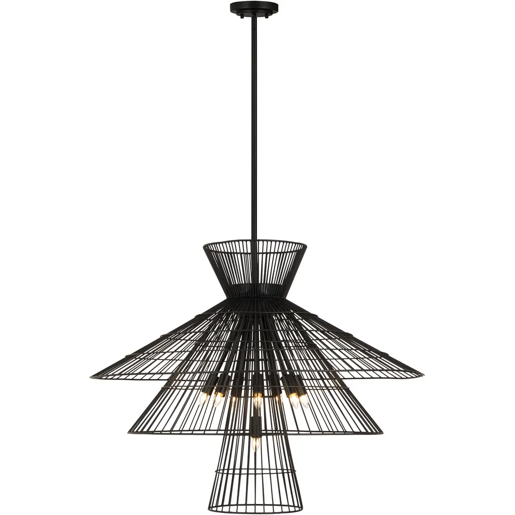 The Brennan Chandelier from Alder & Ore elevates your modern interior with a lighting fixture that exudes a cool personality and a captivating blend of contemporary and industrial design elements. This pendant is a striking addition to any space, featuring a multi-tiered geometric configuration of charming open conical shades. Its body, down rod, and canopy add a touch of sophistication, making it the perfect choice for creating a distinctive ambiance in a custom dining area, entryway, or main living space.