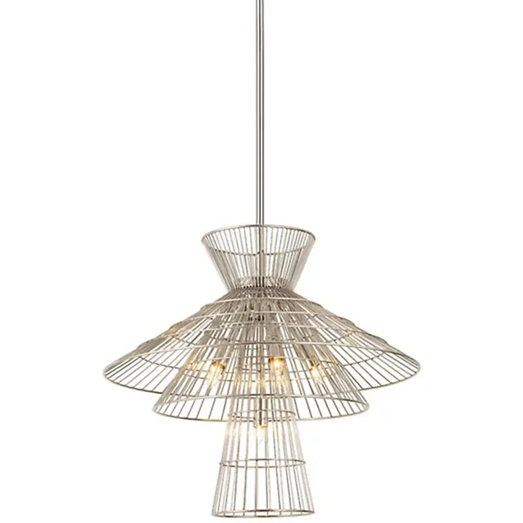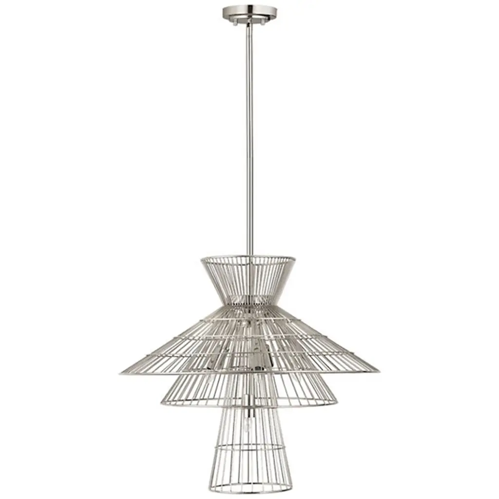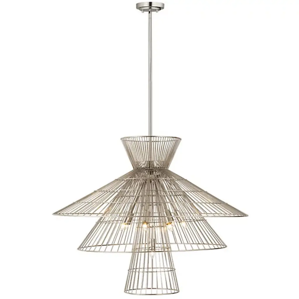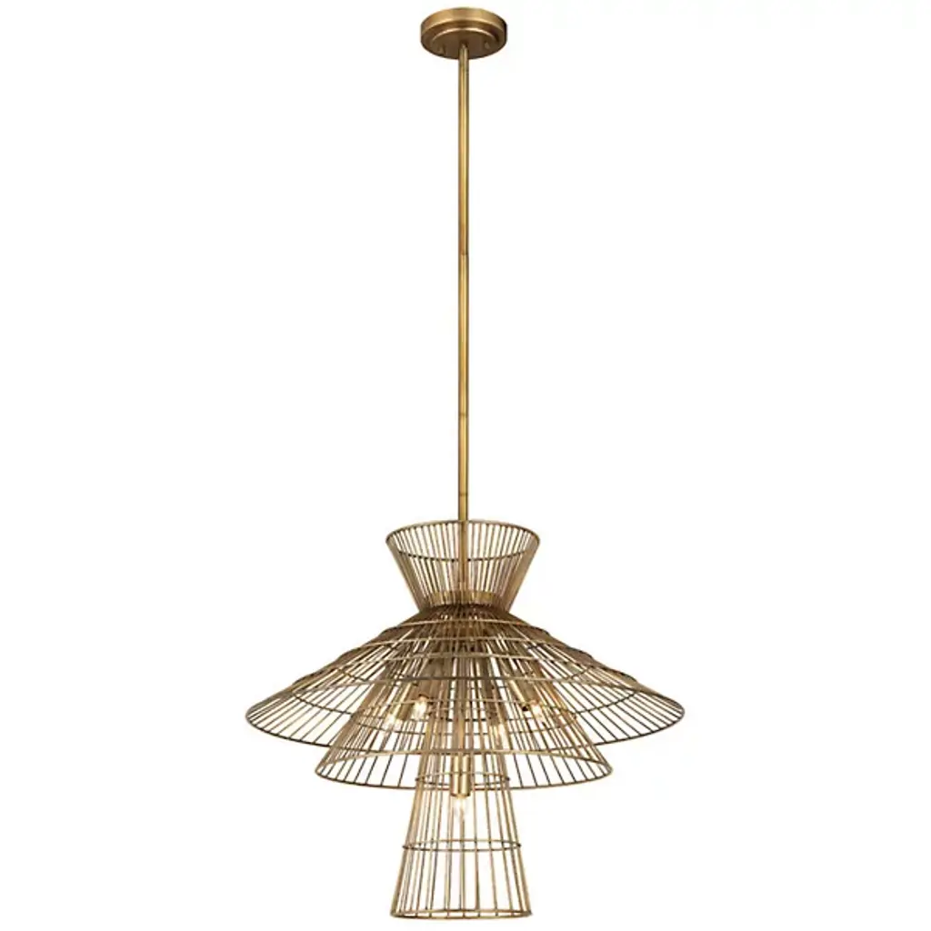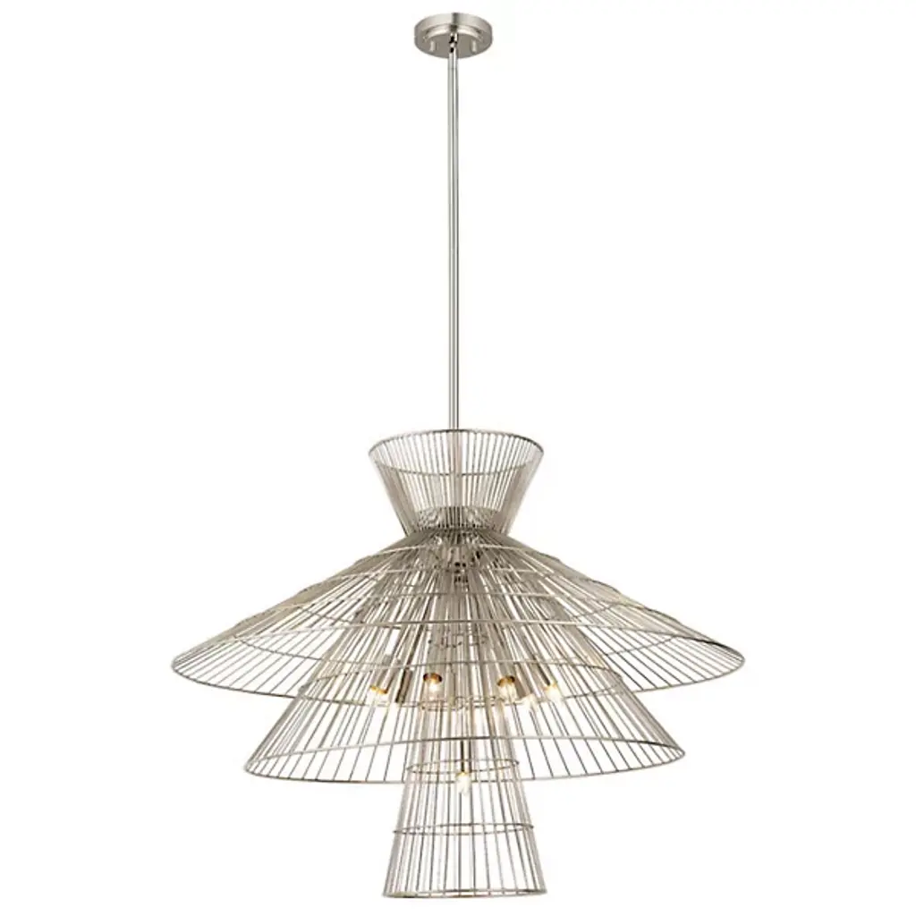 The Brennan Chandelier from Alder & Ore elevates your modern interior with a lighting fixture that exudes a cool personality and a captivating blend of contemporary and industrial design elements. This pendant is a striking addition to any space, featuring a multi-tiered geometric configuration of charming open conical shades. Its body, down rod, and canopy add a touch of sophistication, making it the perfect choice for creating a distinctive ambiance in a custom dining area, entryway, or main living space.