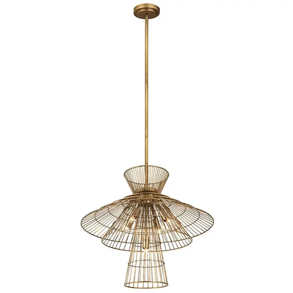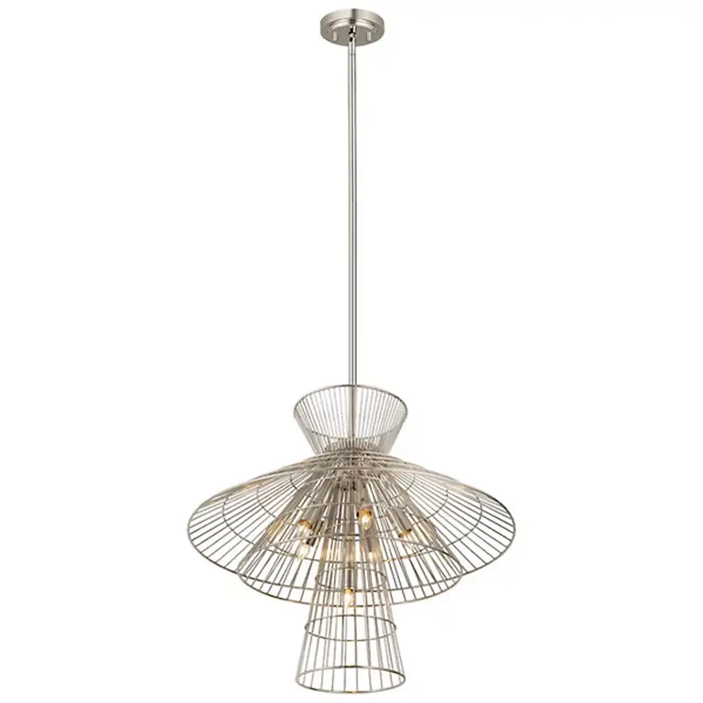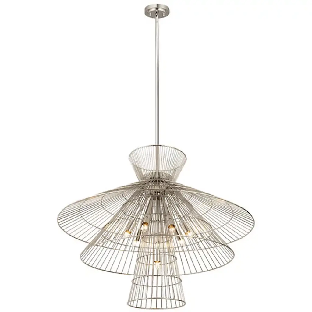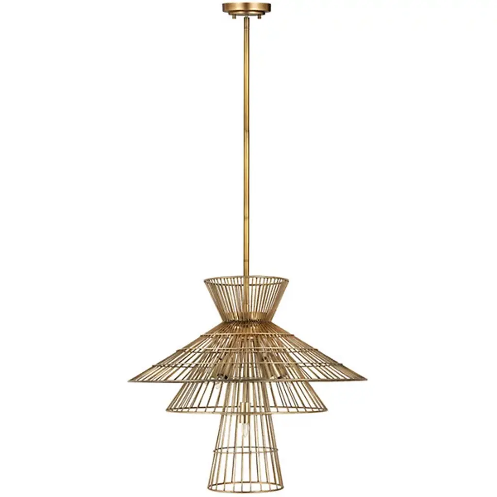 The Brennan Chandelier from Alder & Ore elevates your modern interior with a lighting fixture that exudes a cool personality and a captivating blend of contemporary and industrial design elements. This pendant is a striking addition to any space, featuring a multi-tiered geometric configuration of charming open conical shades. Its body, down rod, and canopy add a touch of sophistication, making it the perfect choice for creating a distinctive ambiance in a custom dining area, entryway, or main living space.