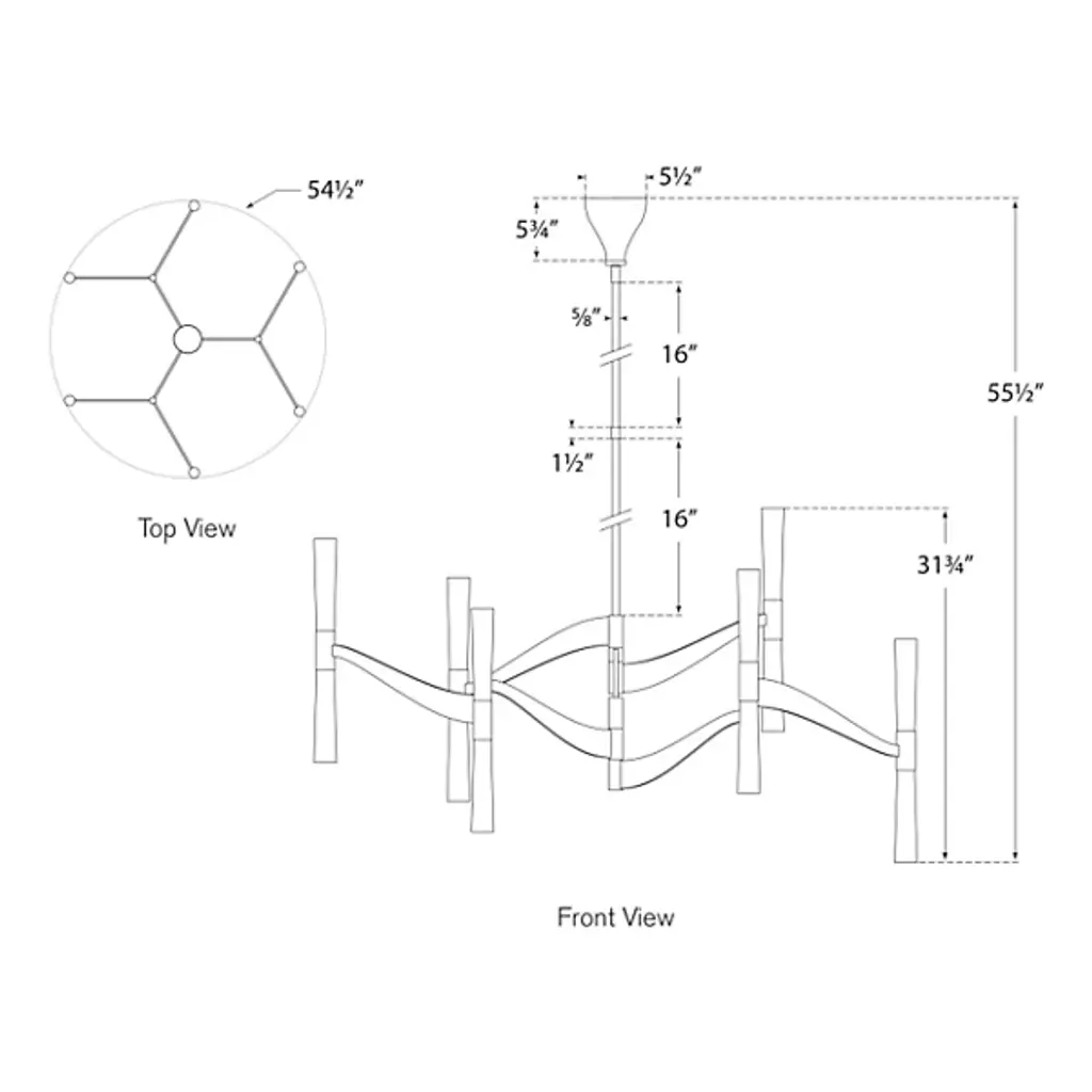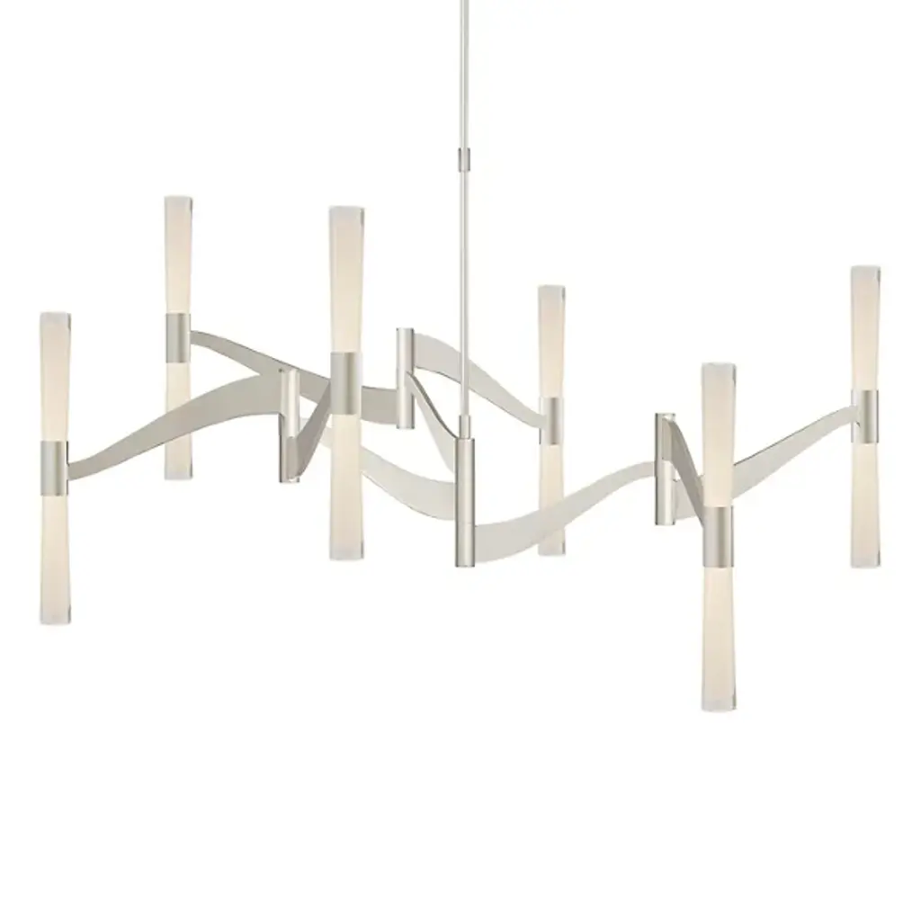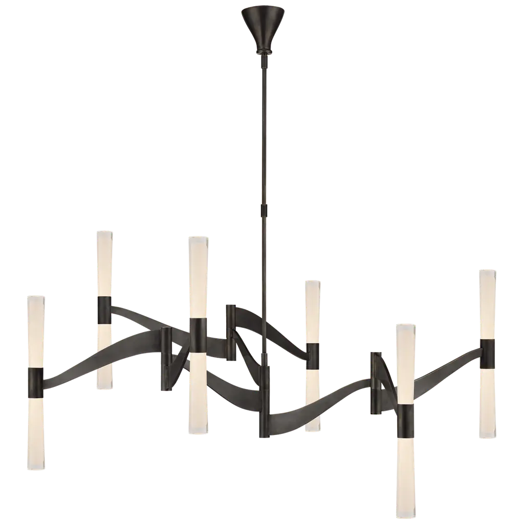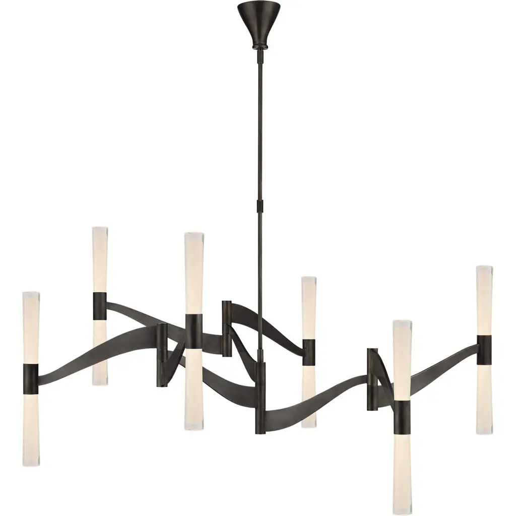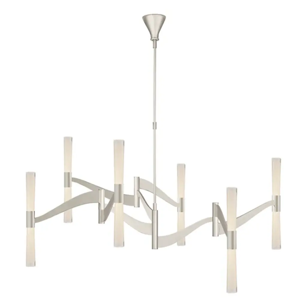 Bring a touch of the avant-garde to your home with the Brenta Grande Chandelier by Visual Comfort Signature, formerly known as Visual Comfort, From a ceiling canopy juts a downrod that secures to a collection of beautiful cylindrical lights. Brass is worked into an angular, swooping design. The metal undulates and intersects at various anchoring points to ensure that the light cylinders are held in an upright position. These cylinders emit bright light from LED bulbs, allowing your contemporary layout to be fully illuminated.