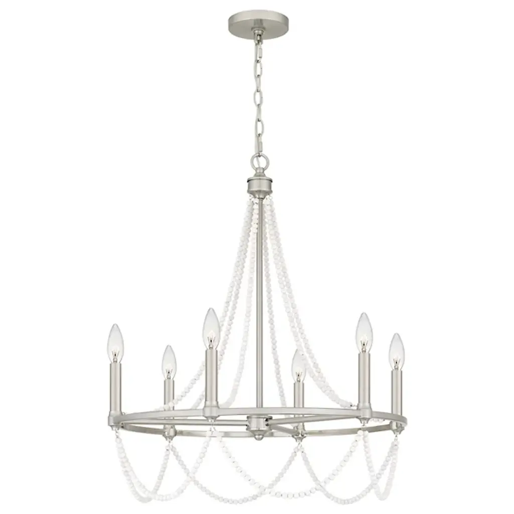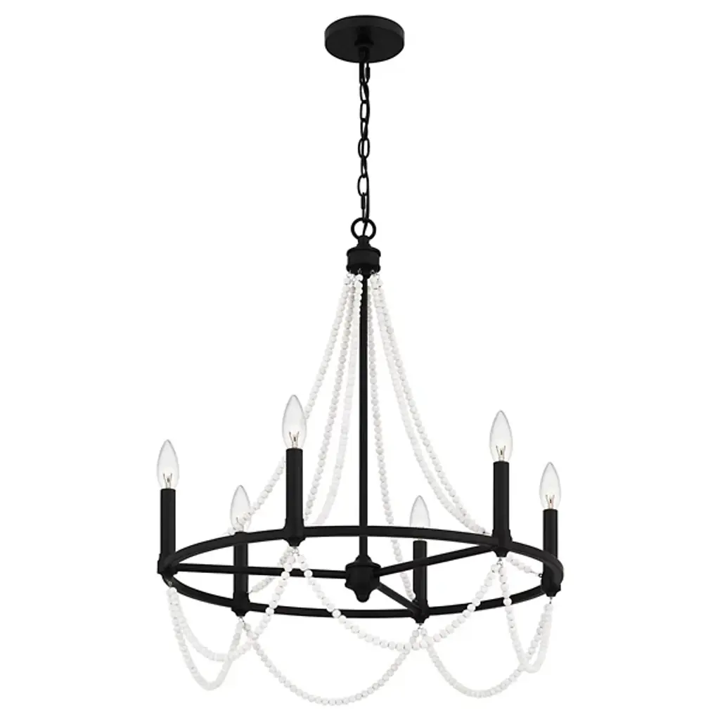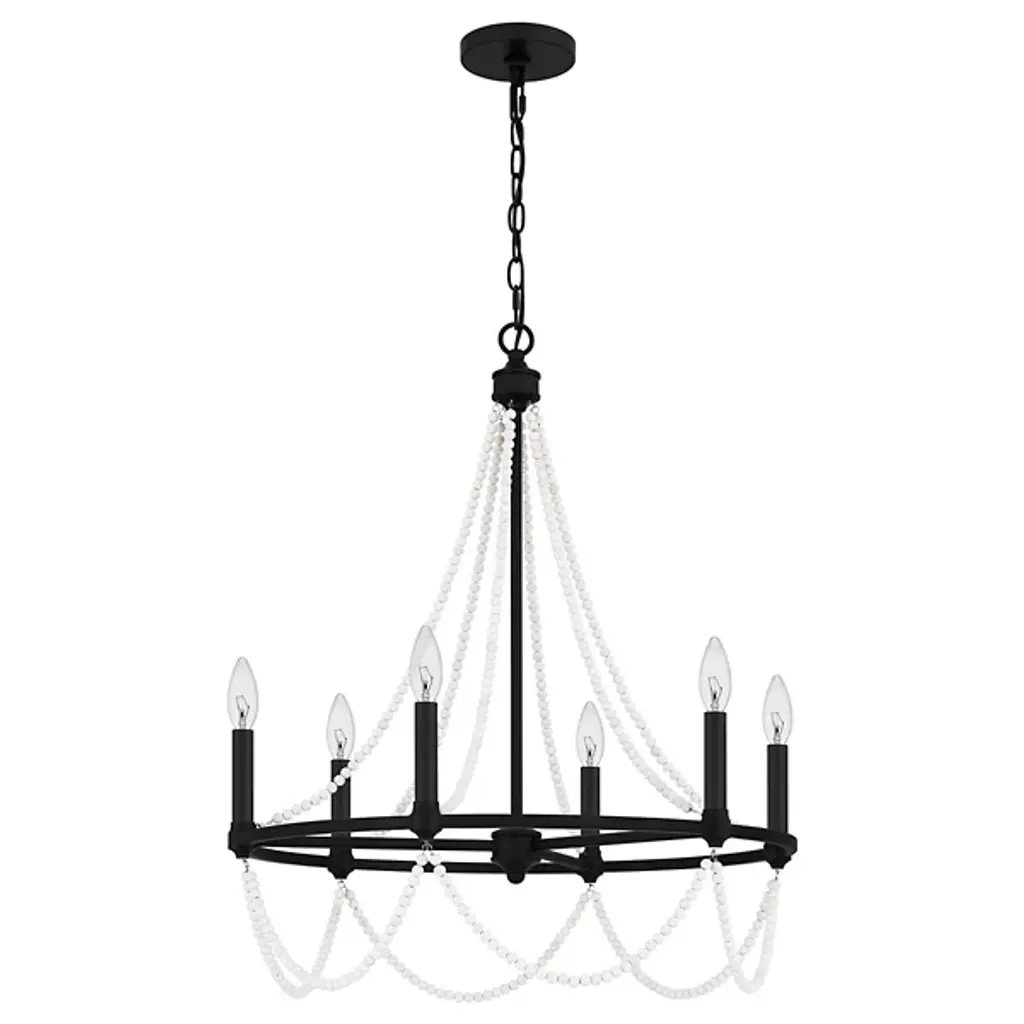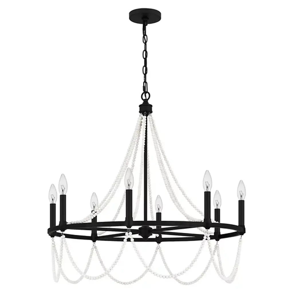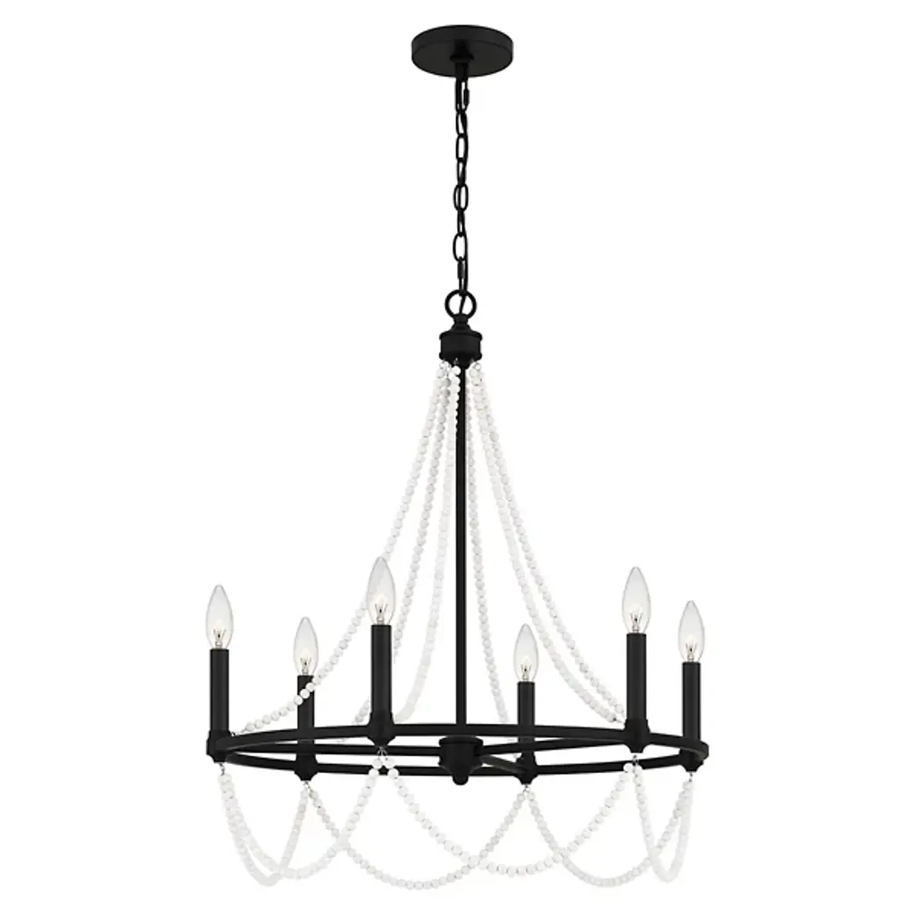 Part of the Quoizel Naturals series, the Brigitta Chandelier by Quoizel exemplifies modern bohemian style with draped wooden beadwork throughout. The fine metal framework is constructed in the shape of a ring which makes the candelabra lights stand out alongside your home decor. Two sizes allow for a tailor-made fit ideal for a romantic dining space or kitchen.