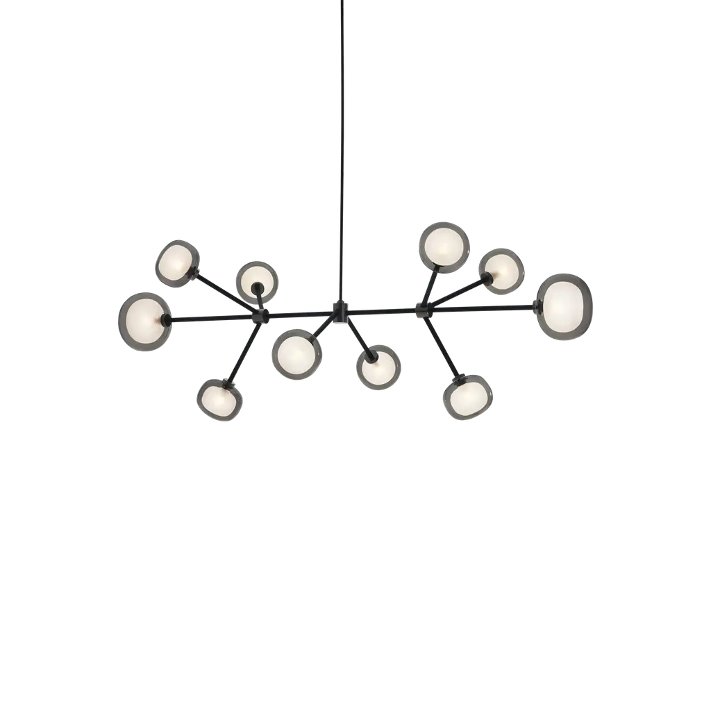 The Brindille 2-Tier LED Chandelier from Visual Comfort Signature creates a connection with the modern and contemporary space as a gorgeous network of radiant forms. This piece, designed by Champalimaud, underscores the studio's goal of creating character in spaces through extraordinary designs. The chandelier starts with a slim profile downrod. Slender arms scatter horizontally line a tree branch for a graphic silhouette. Round glass globes create a popping visual as they cover the brilliant LEDs. While on, the chandelier's radiant glass dots produce a warm, surrounding aura.