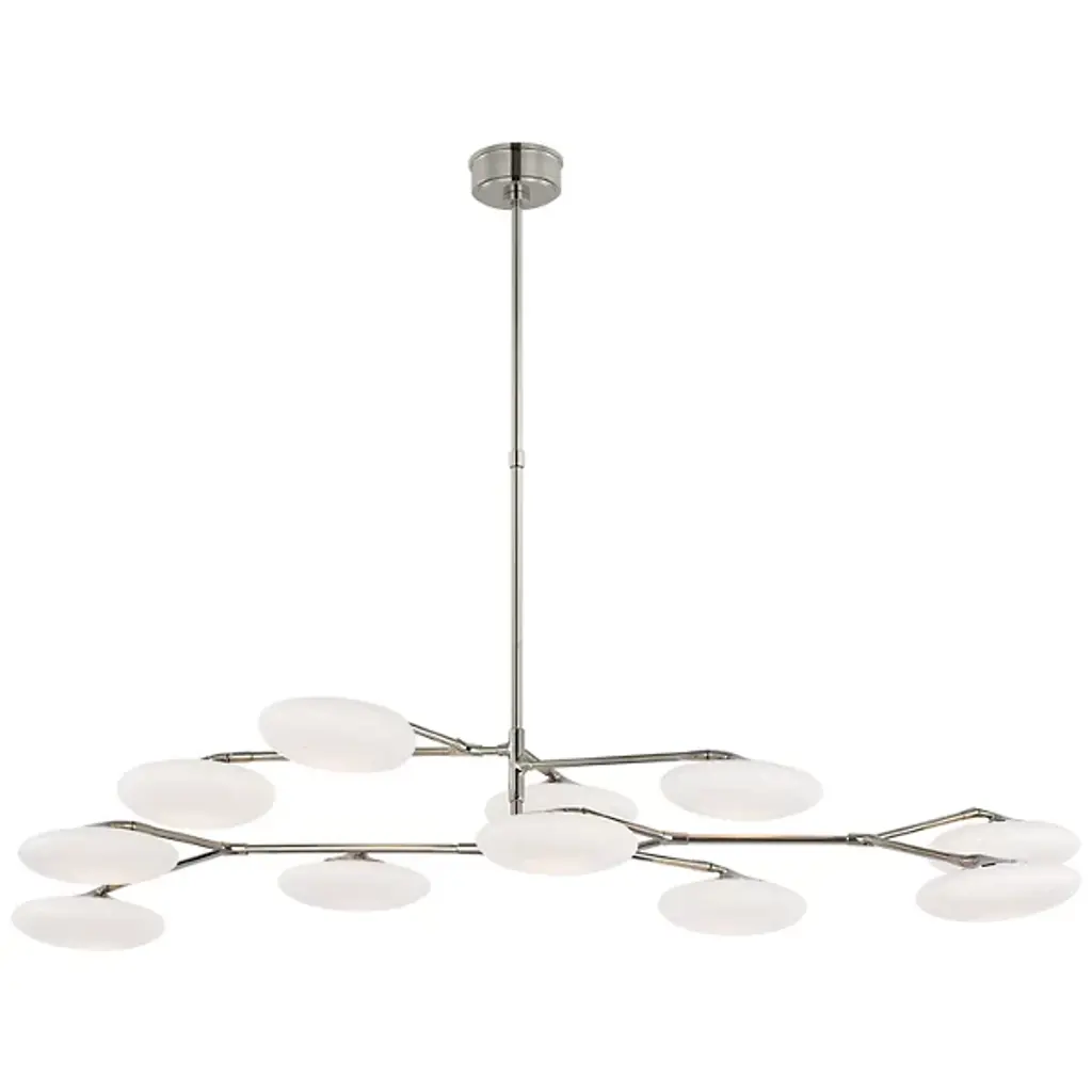 The Brindille 2-Tier LED Chandelier from Visual Comfort Signature creates a connection with the modern and contemporary space as a gorgeous network of radiant forms. This piece, designed by Champalimaud, underscores the studio's goal of creating character in spaces through extraordinary designs. The chandelier starts with a slim profile downrod. Slender arms scatter horizontally line a tree branch for a graphic silhouette. Round glass globes create a popping visual as they cover the brilliant LEDs. While on, the chandelier's radiant glass dots produce a warm, surrounding aura.