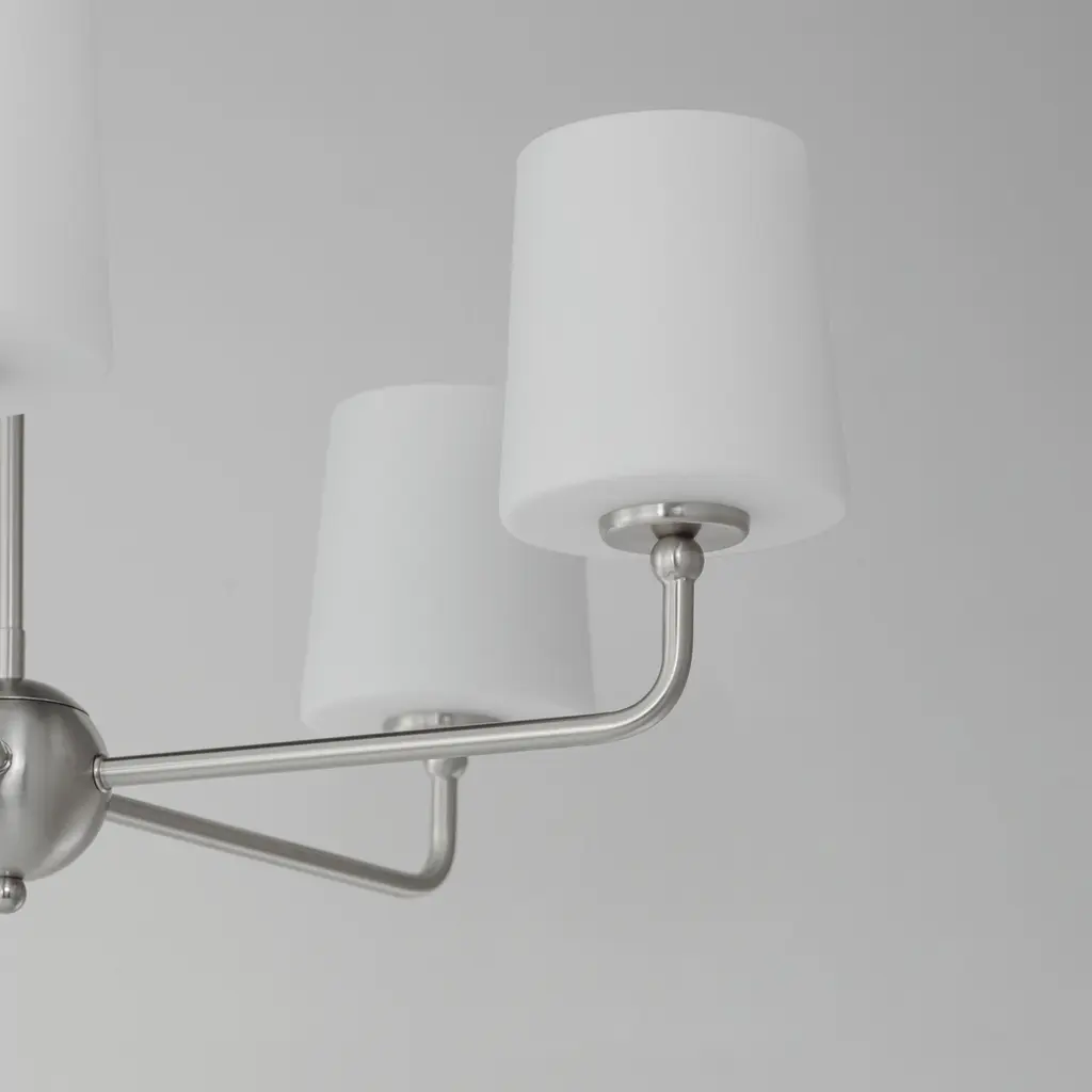 Understated elegance and convenience in its design, the simple curved arms of the Bristol collection outstretch in elongated proportions that terminate at a tapered Satin White glass shade. Designed to emulate a traditional fabric shade, the material being glass adds the element of easy maintenance and allows for upward and downward facing light installations. The single tiered wider diameters on the chandeliers also offer an upscale country living addition to the collection. Available in various finishes of Satin Nickel, Satin Brass, or black tones including a textured Anthracite finish on the chandeliers and sconces.