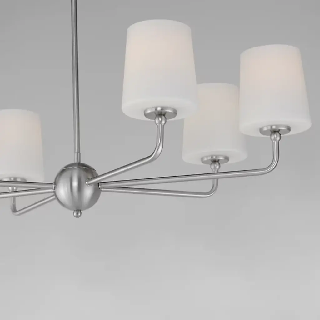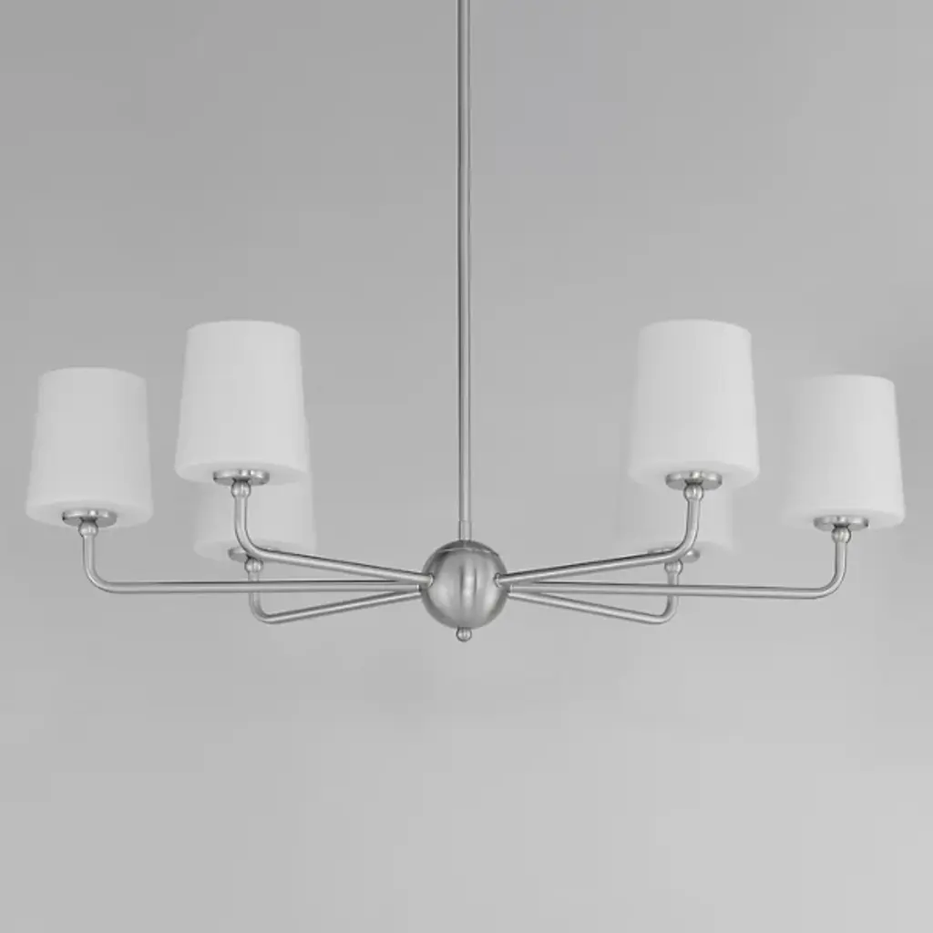 Presented by Maxim Lighting, the Bristol Chandelier is a luxury light furnishing with a contemporary style. Simple curved arms elongate to hold satin white glass shades meant to emulate the look of fabric. Since they are glass, they will be easier to maintain. Display the Bristol in a locale that will benefit from the understated elegance.