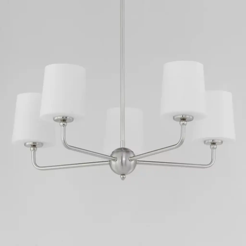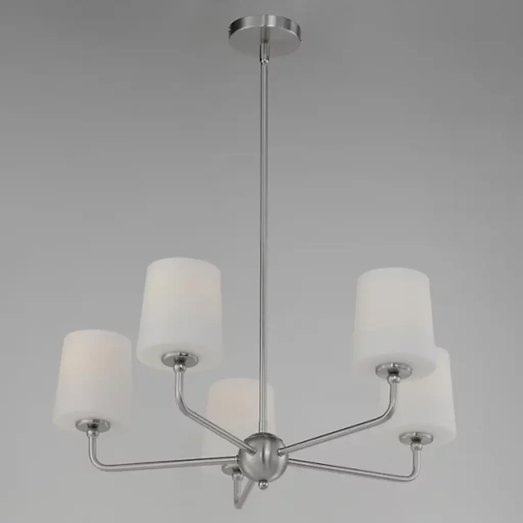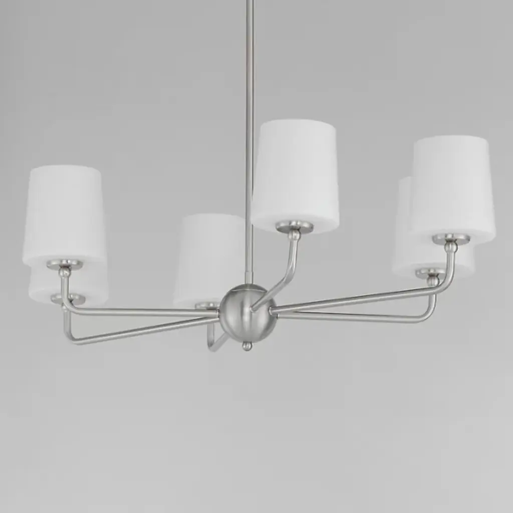 Presented by Maxim Lighting, the Bristol Chandelier is a luxury light furnishing with a contemporary style. Simple curved arms elongate to hold satin white glass shades meant to emulate the look of fabric. Since they are glass, they will be easier to maintain. Display the Bristol in a locale that will benefit from the understated elegance.