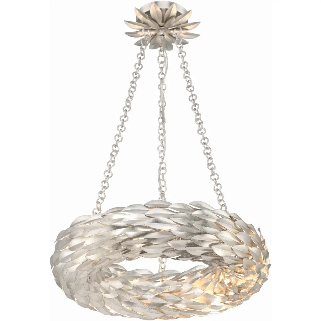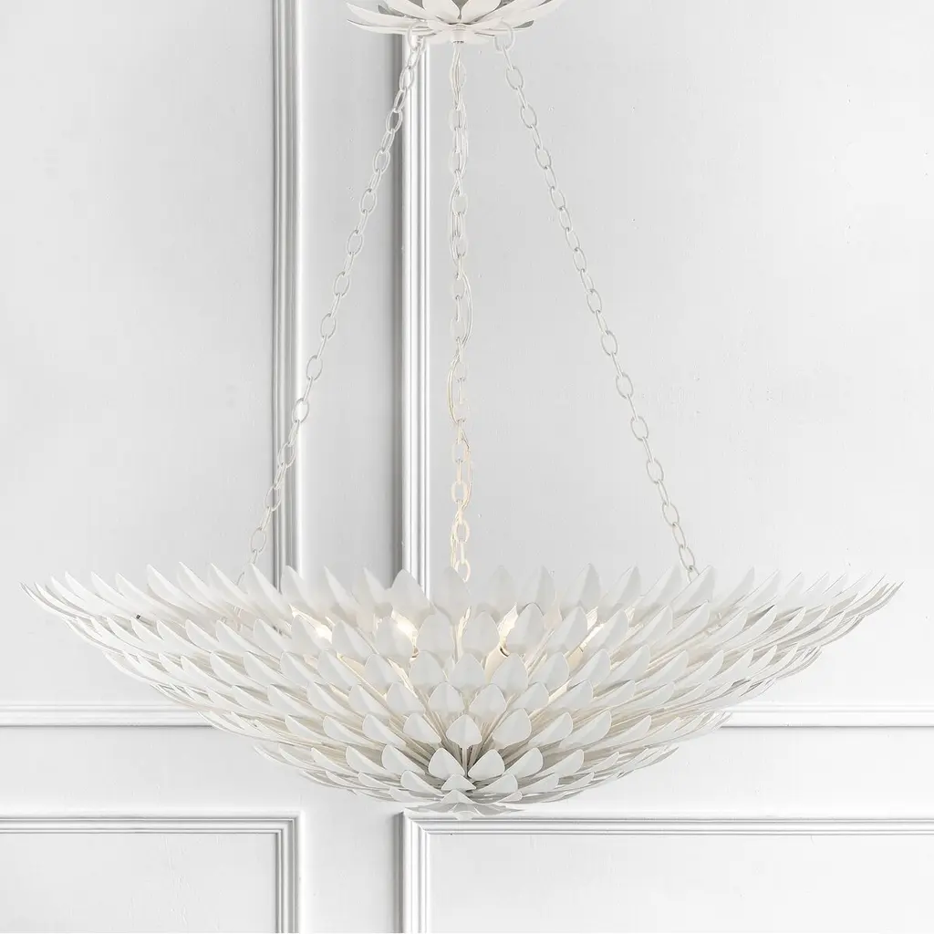 Layers of individual wrought iron leaves deliver a stunning, unique, and functional light. The tailored elegance of the shimmering metallic florals is perfect for a transitional home though versatile enough to be incorporated into any modern design. While ideal for a bedroom, living area, or kitchen, it can be used anywhere you want to add a bit of glam.