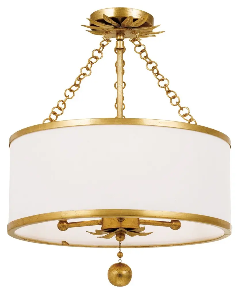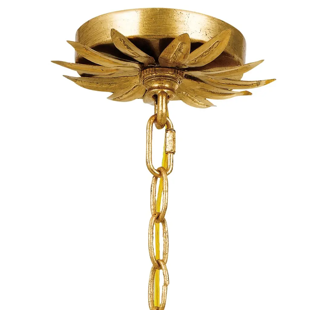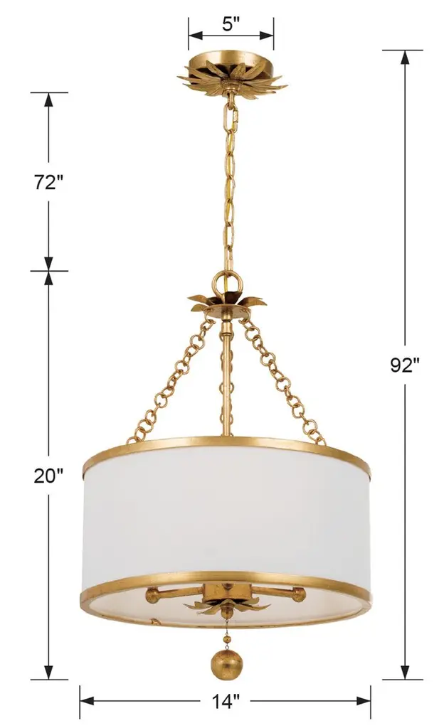 A wonderful way to add distinctive style to your decor, this versatile chandelier is crafted of wrought iron in an antiqued finish with shapely petal detailing and a white linen shade. Hardwired.