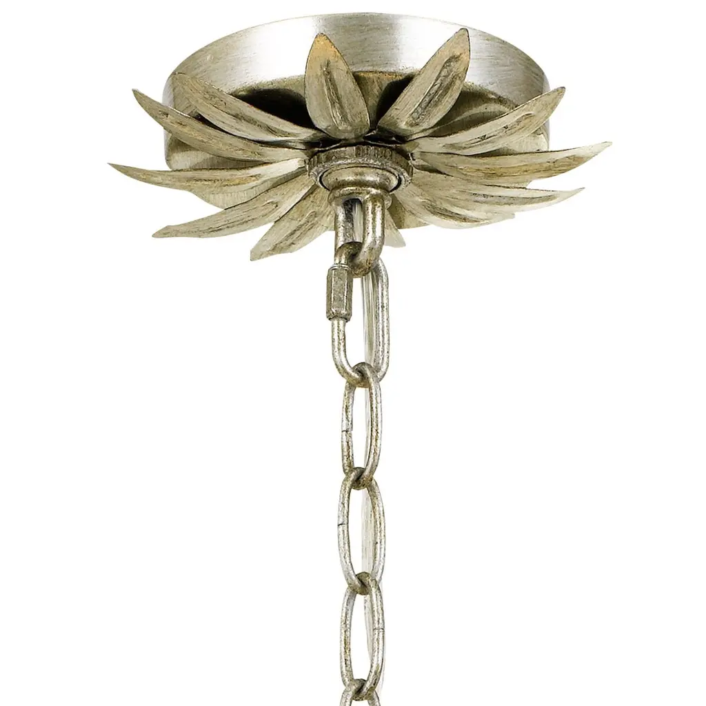 A wonderful way to add distinctive style to your decor, this versatile chandelier is crafted of wrought iron in an antiqued finish with shapely petal detailing and a white linen shade. Hardwired.