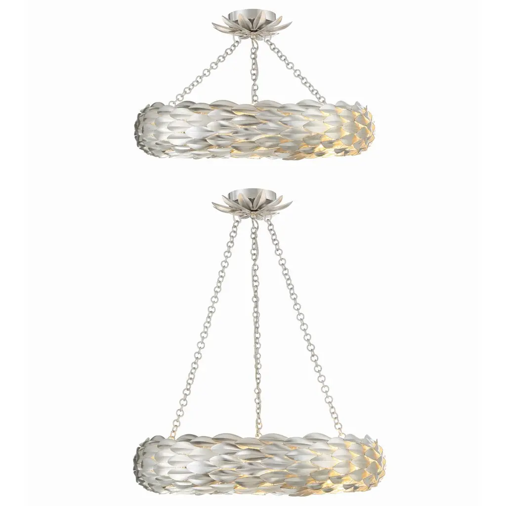 Layers of individual wrought iron leaves deliver a stunning, unique, and functional light. The tailored elegance of the shimmering metallic florals is perfect for a transitional home though versatile enough to be incorporated into any modern design. While ideal for a bedroom, living area, or kitchen, it can be used anywhere you want to add a bit of glam.