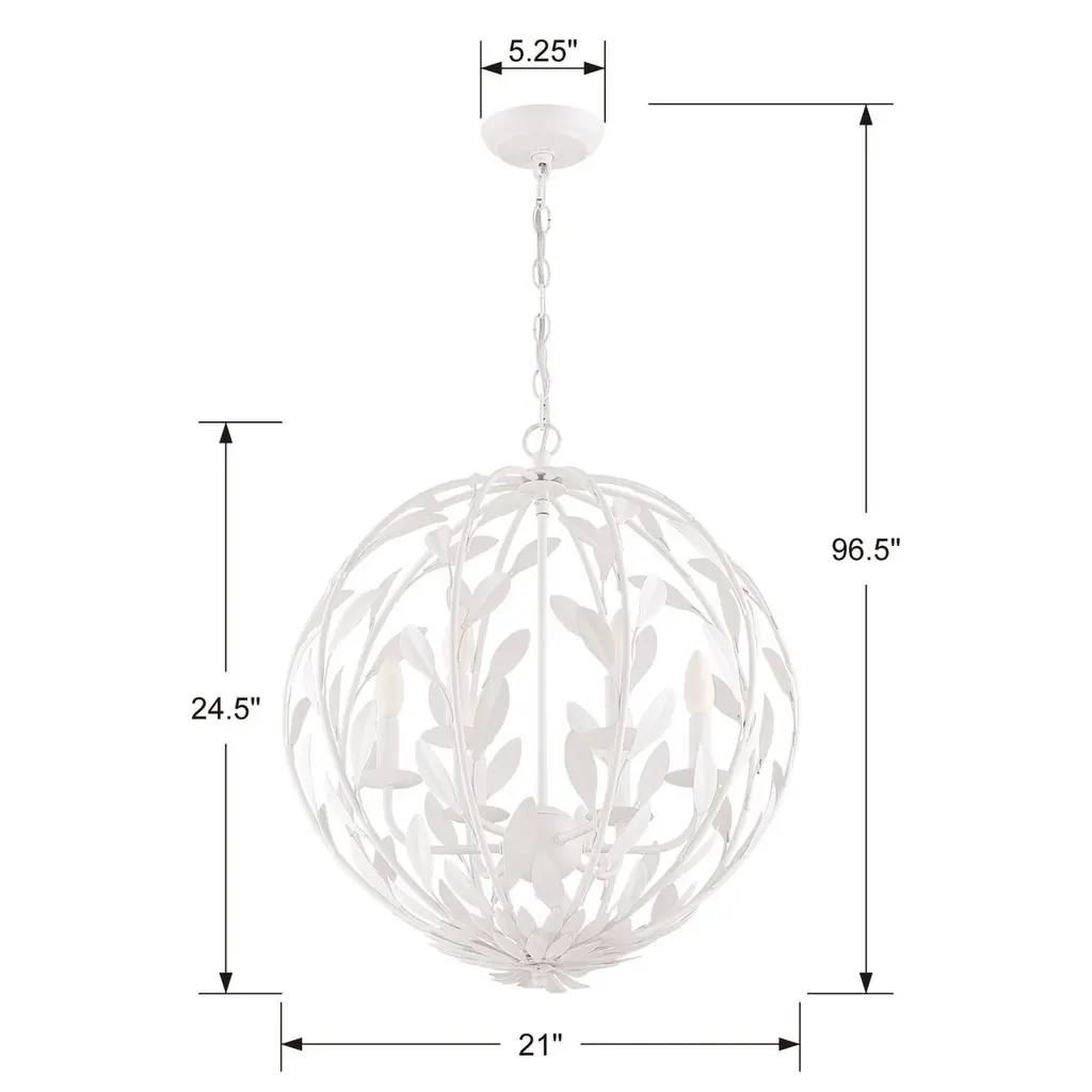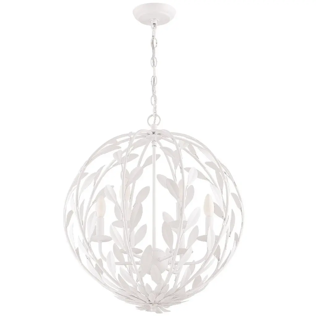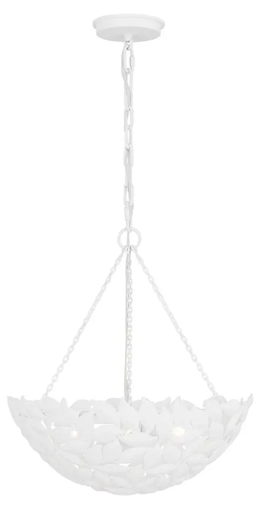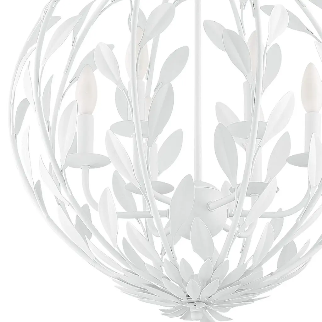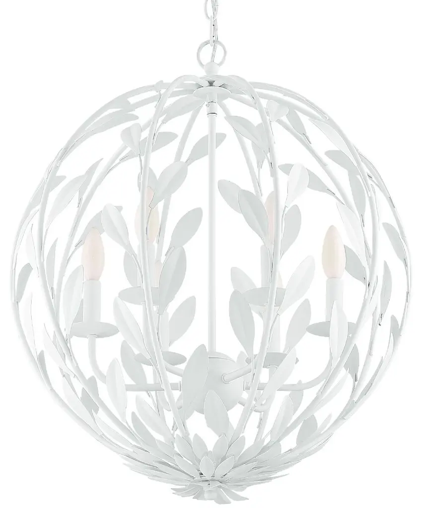 This chandelier will light up a room with understated elegance. A sphere of leaves is meticulously crafted from steel in a matte white finish. Hardwired.