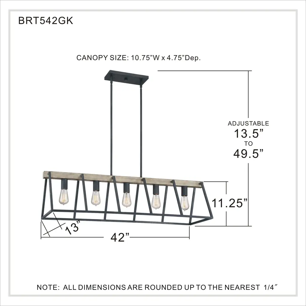 Brockton 5 Light 42 Inch Grey Ash Island Chandelier Ceiling Light