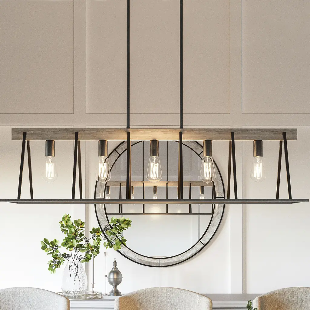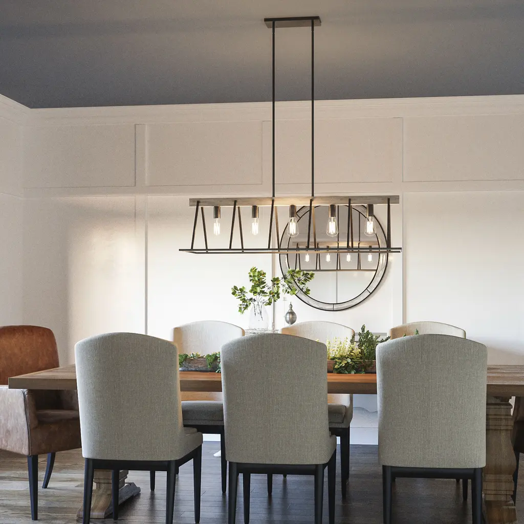 With open framework and weathered styling, the Brockton comes farmhouse-approved. The grey ash finish of the thin metal body pairs perfectly with the whitewash finish of the faux wood accents. Vintage filament bulbs provide soft, ambient light in this rustic charmer.