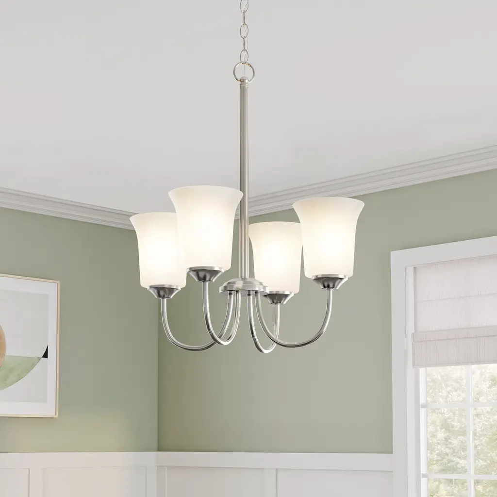 With simple elements and flared Frosted Glass shades, Bronson is a Transitional collection that blends Traditional and Modern styling. It’s available in either Matte Black or Brushed Nickel, and a wide variety of fixture types to suit all of your lighting needs. Made from durable steel for years of enjoyment and illumination.