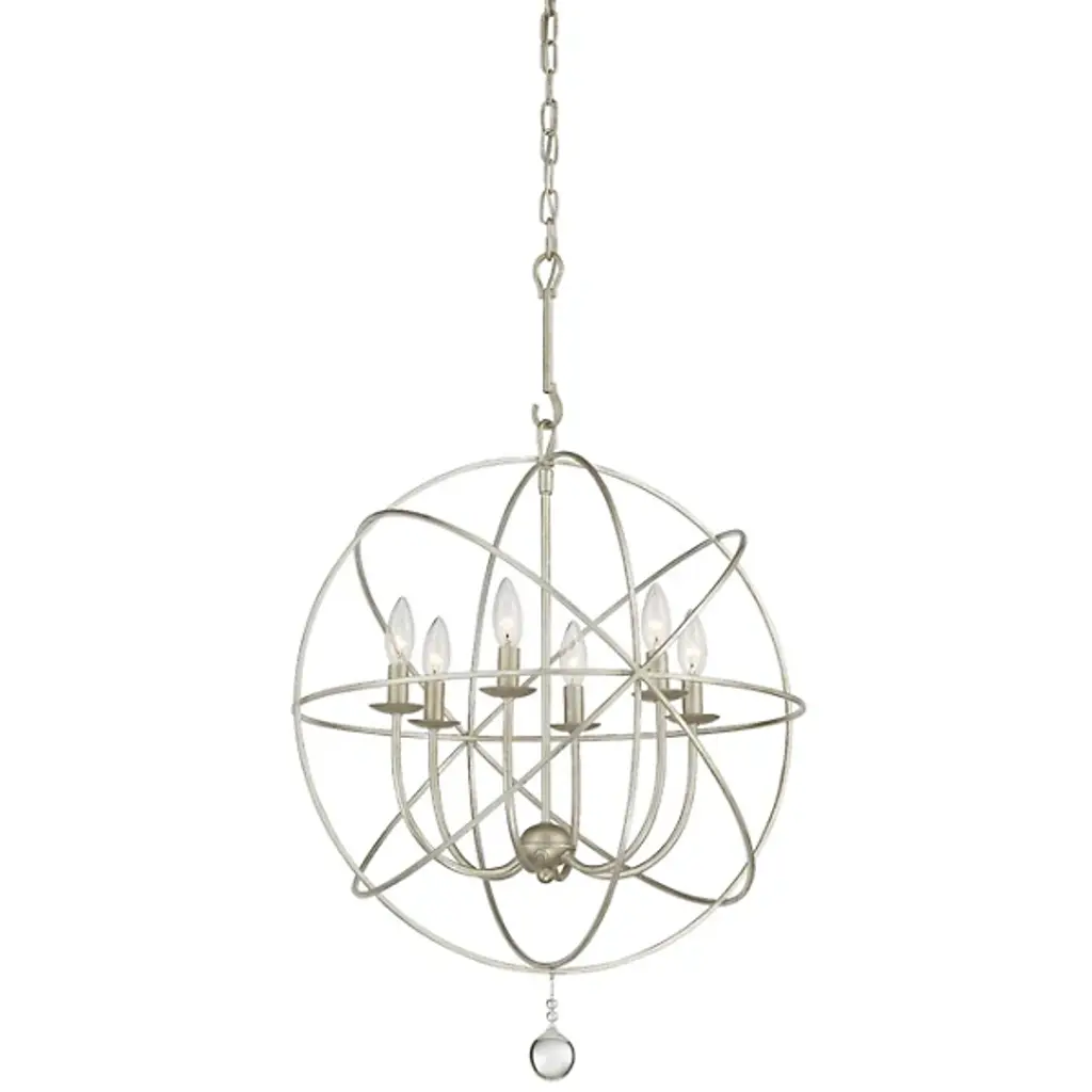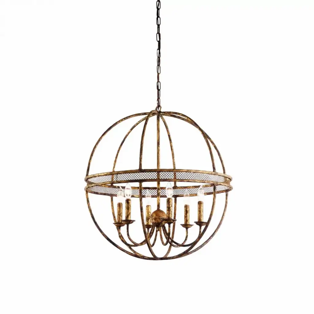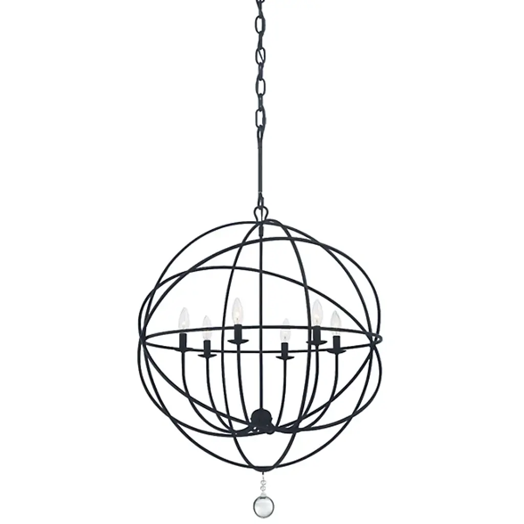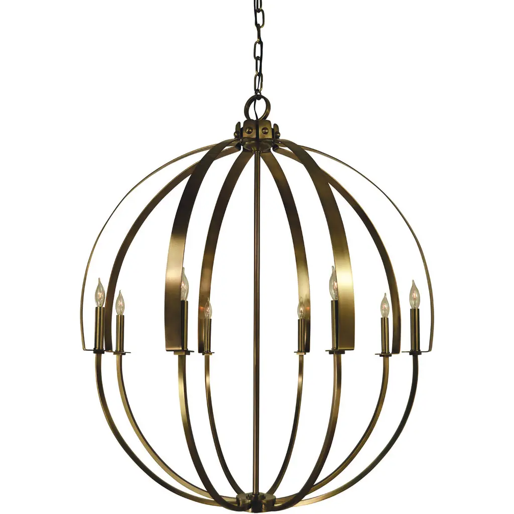 The Broxton Bronze Orb Chandelier has a Pyrite bronze finish on its spherical cage. This heightens the time-honored countenance of this bronze chandelier in the Lillian August Collection. The seeded glass panels enhance the fixture's glow. There are several other chandeliers in the Broxton family.