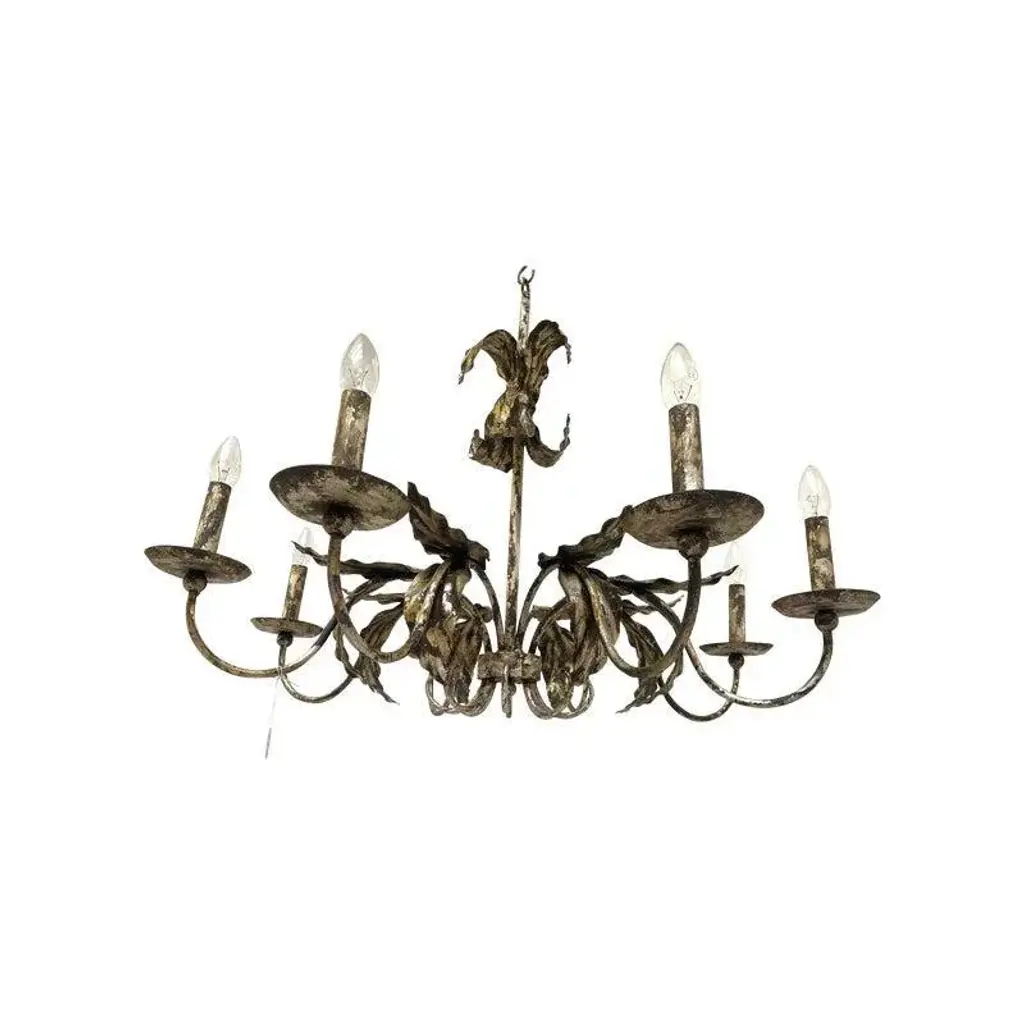 Brunish-clay florentine wrought iron chandelier florentine art brunito and argilla metal wrought iron chandelier made in italy brunito, clay and silver leaf hand-made italian very particolular finishing , impressive wrought iron florentine art made in italy entirely made in italy, fruit of high italian know-how,elegant and luxury piece of art. particular processing for the finish with clay and silver-leaf that produce a unspected vibration of light. the beauty lies in the movement of the leaves. dimensions (cm/in): d 90 h 55 cm cm/d 35.4″ h 21.6″ chain 19.7″ more canopy 6 bulbs. Bulbs not included, they are compatible with led sustainability. all made in italy, ship from italy up to 250v (europe/uk standard).