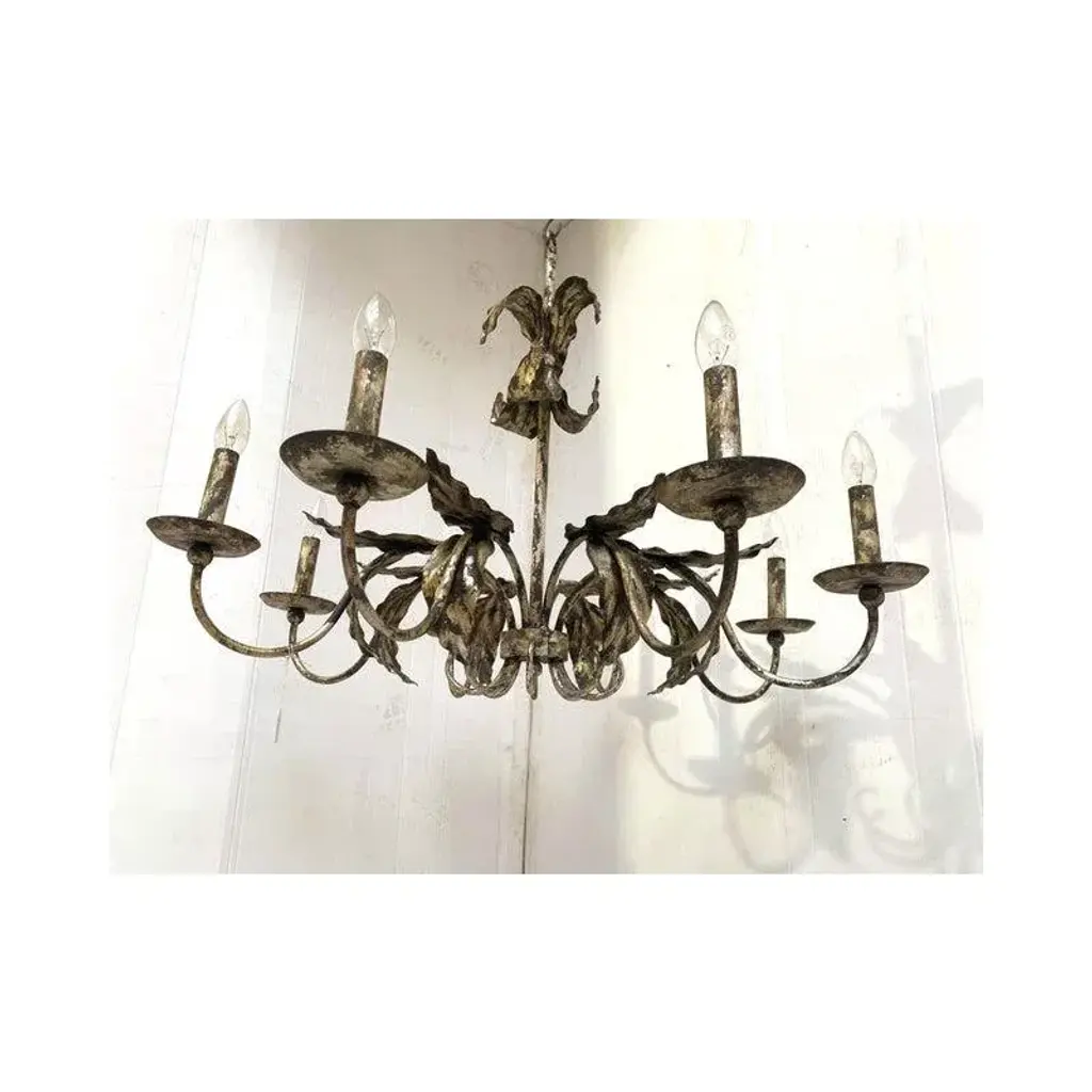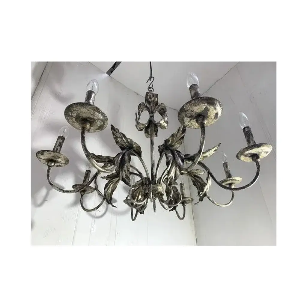 Brunish-Silver Florentine Wrought Iron Chandelier By Simoeng