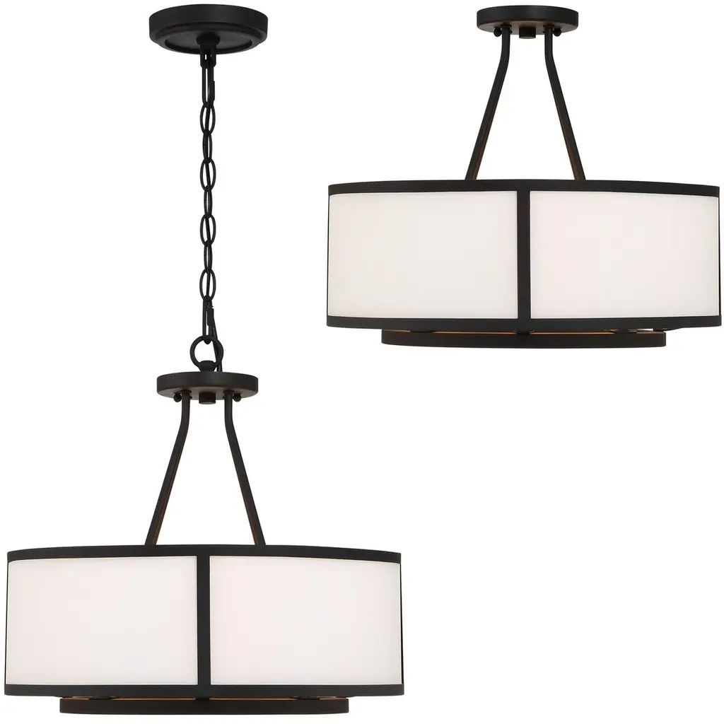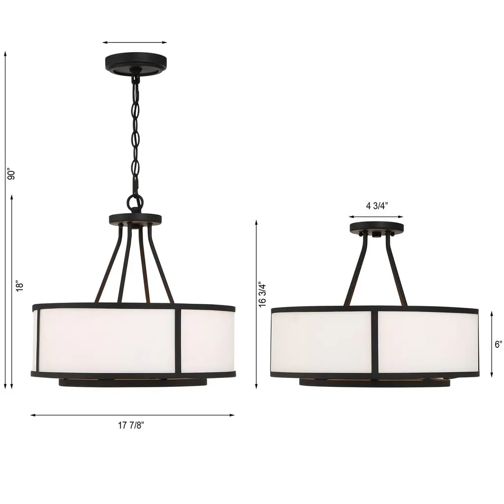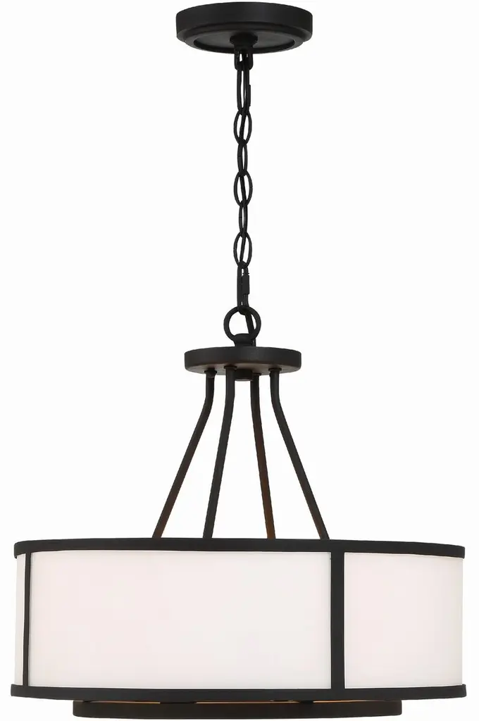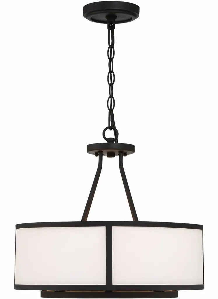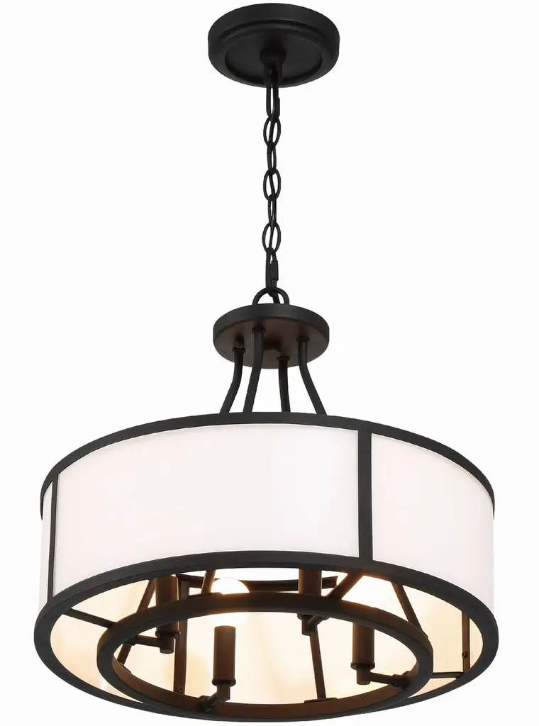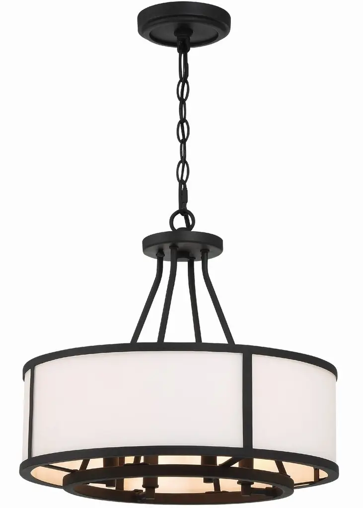 The contrast of the white glass shade and the black steel frame gives this four-bulb chandelier the timeless sophistication of a tuxedo. Because the chandelier is damp rated, you can use it in a bathroom as well as in an entryway, over a dining table, or just about anywhere else in your home.