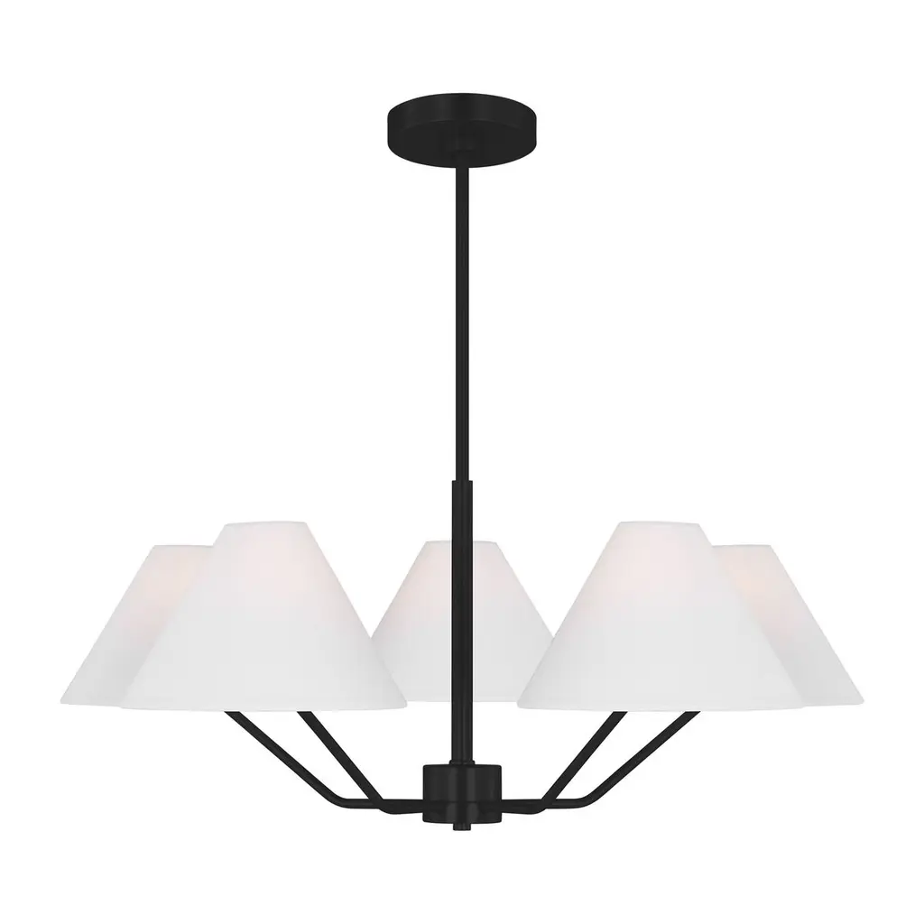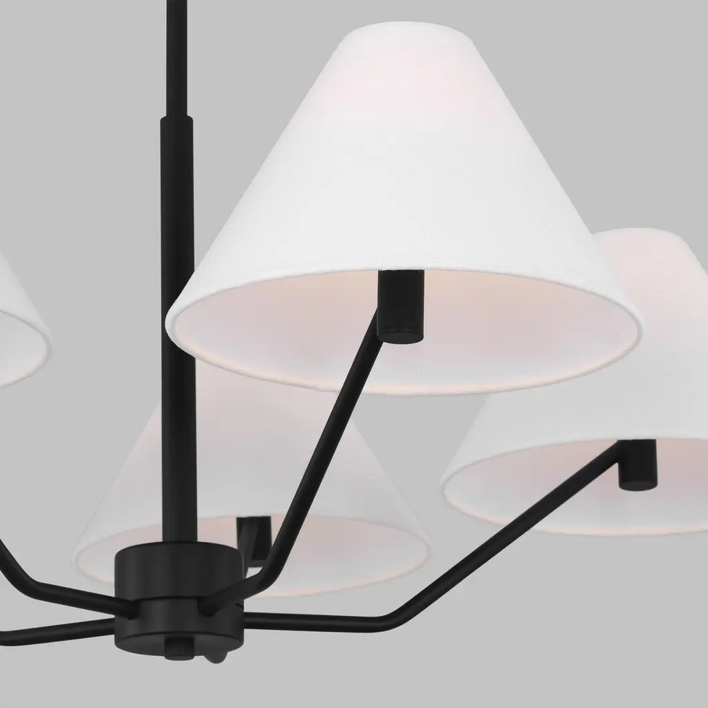 The Burke Transitional Chandelier combines thin, angular arms with linen shades for a modern touch. Available in multiple sizes, this dimmable chandelier adds a sophisticated elegance to any space.