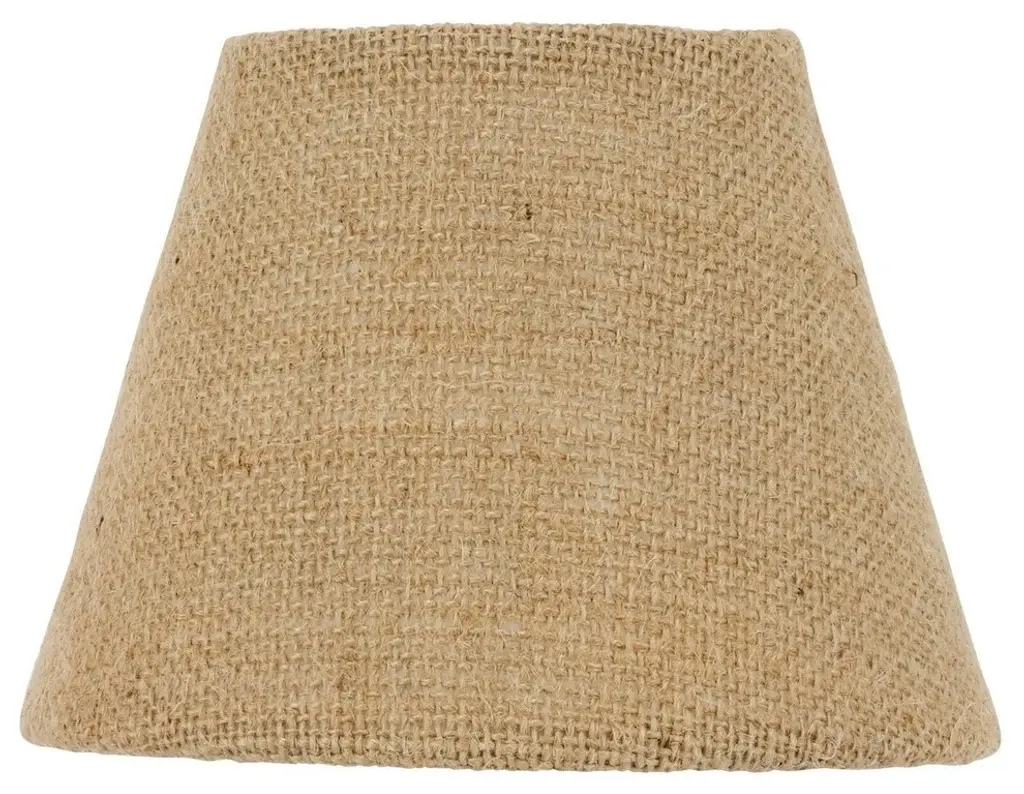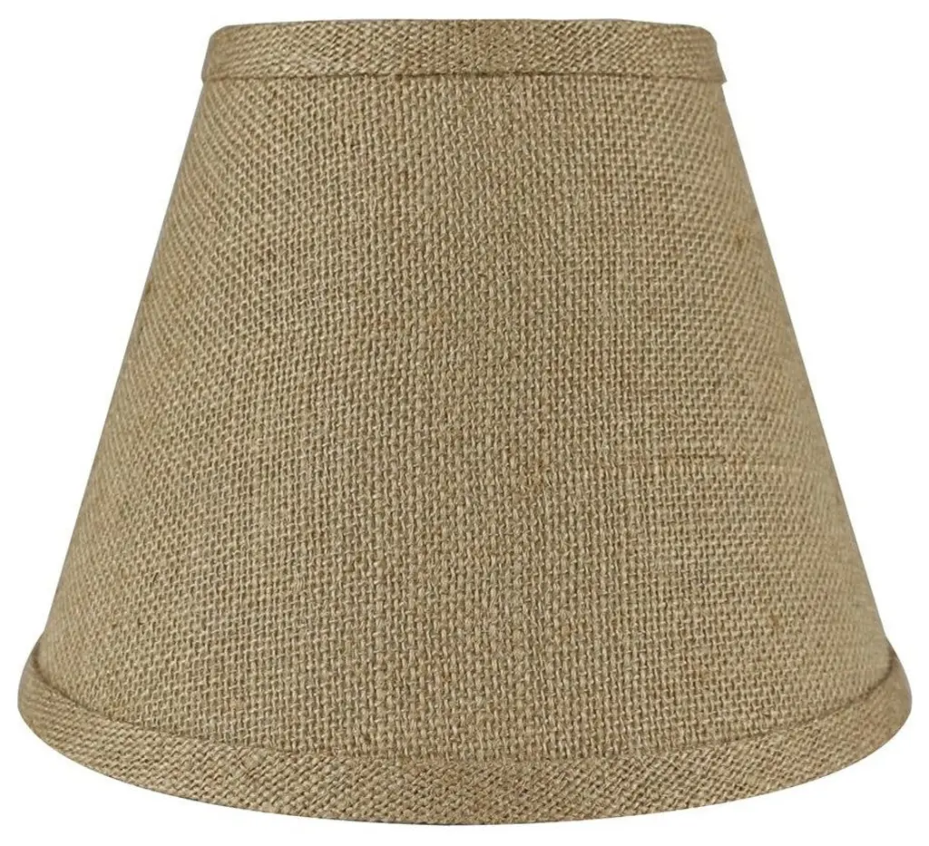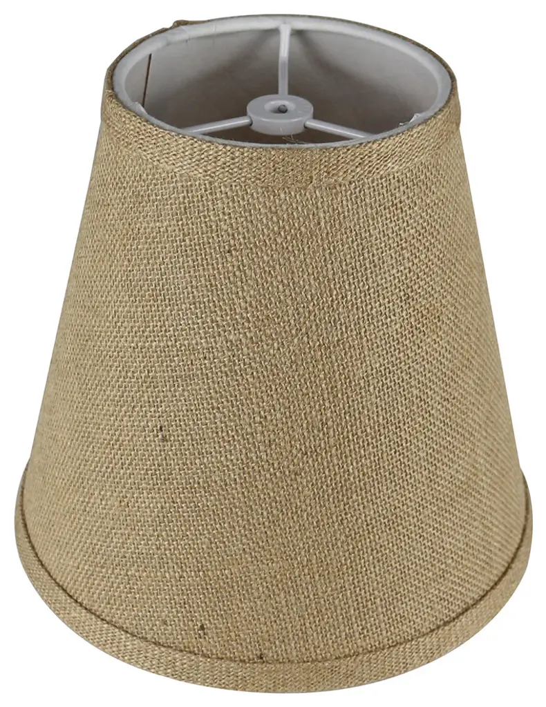 Urbanest natural burlap chandelier shadeSoftback bell shape; Clip onMeasurements: 3-inch top; 6-inch bottom; 5-inch slant heightnatural burlap; Beige linerUse 40 watts max candelabra bulb