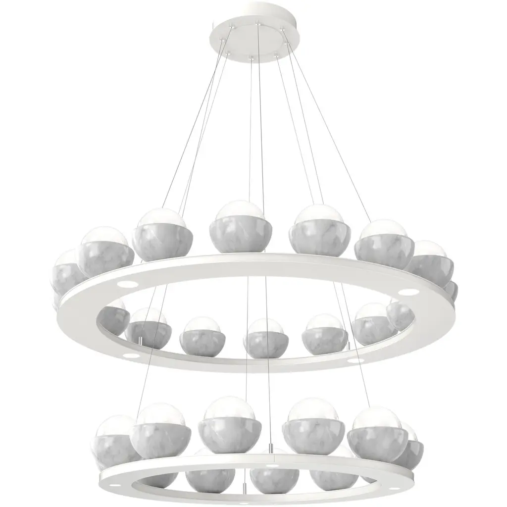 Cabochon Led Burnished Bronze With Travertine Stone Chandelier Ceiling Light In 2700k Led, Opal White, Two-Tier