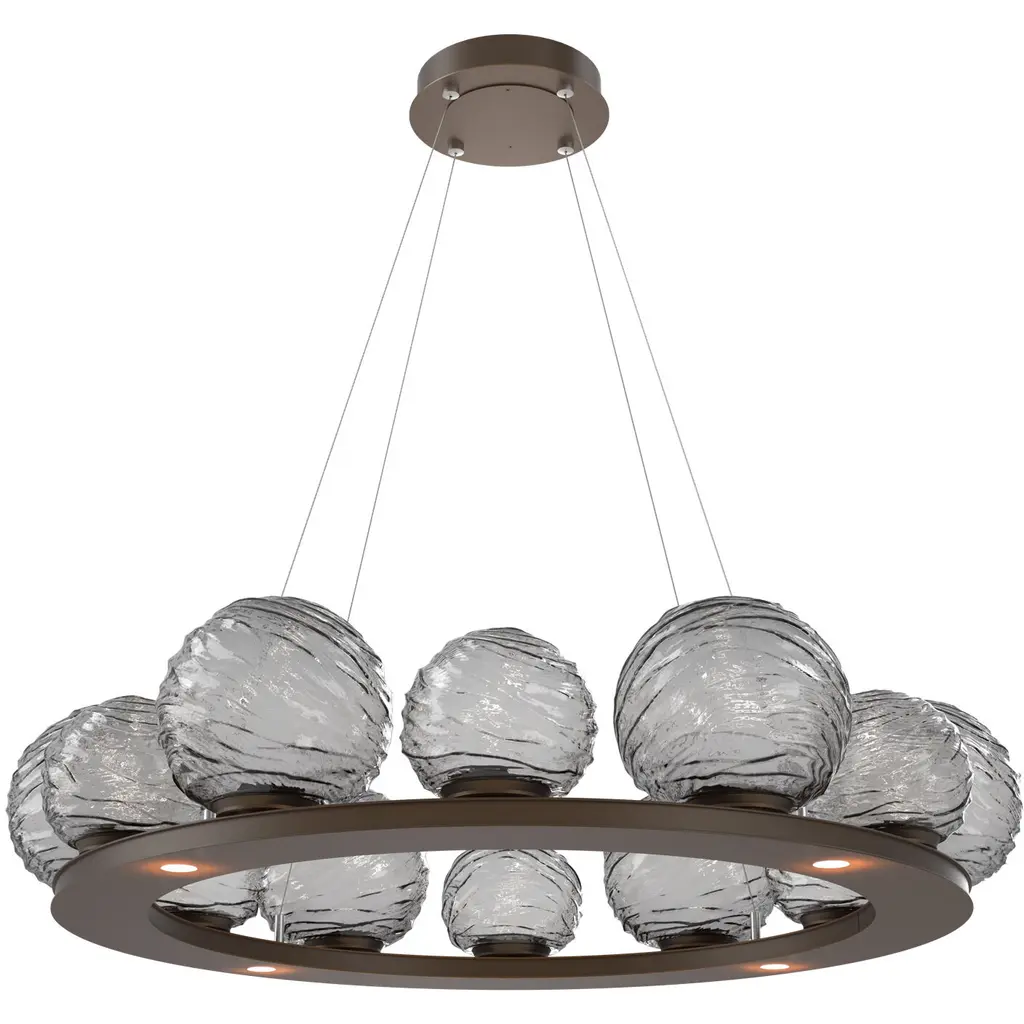 This 36 light Chandelier from the Cabochon collection by Hammerton Studio will enhance your home with a perfect mix of form and function. The features include a Burnished Bronze with Travertine Stone finish applied by experts. This item qualifies for free shipping!