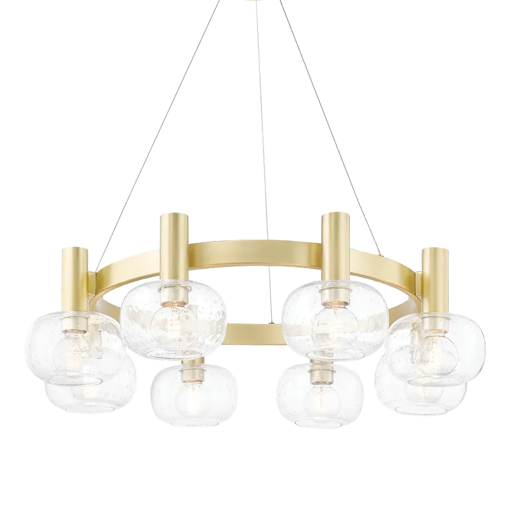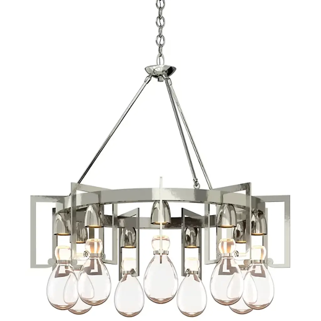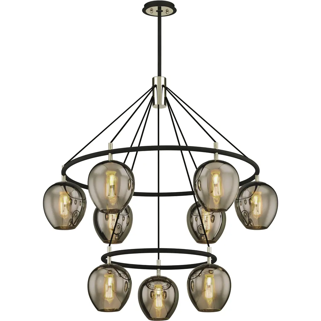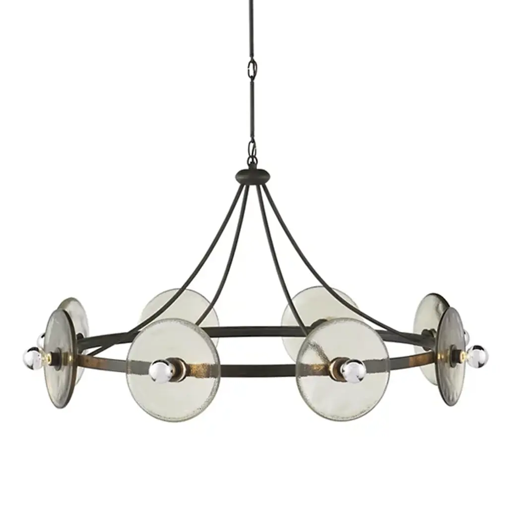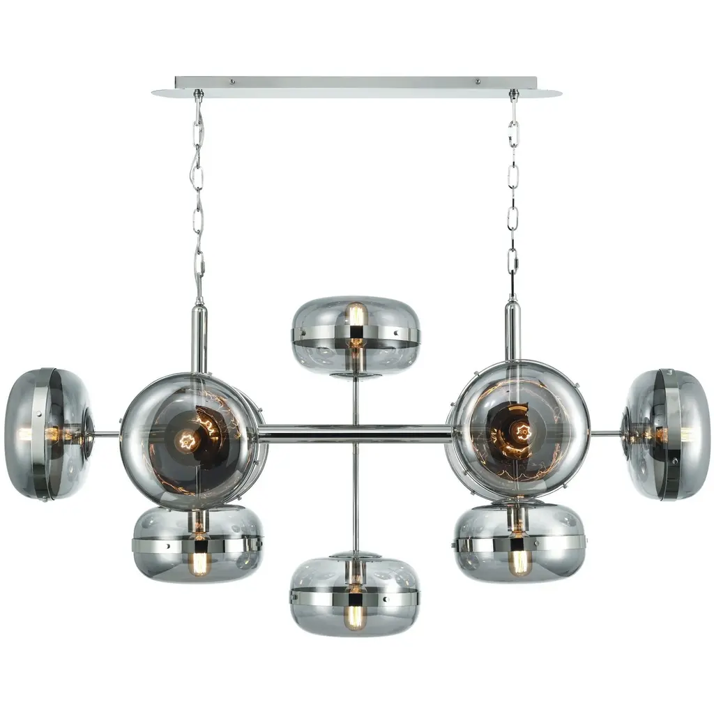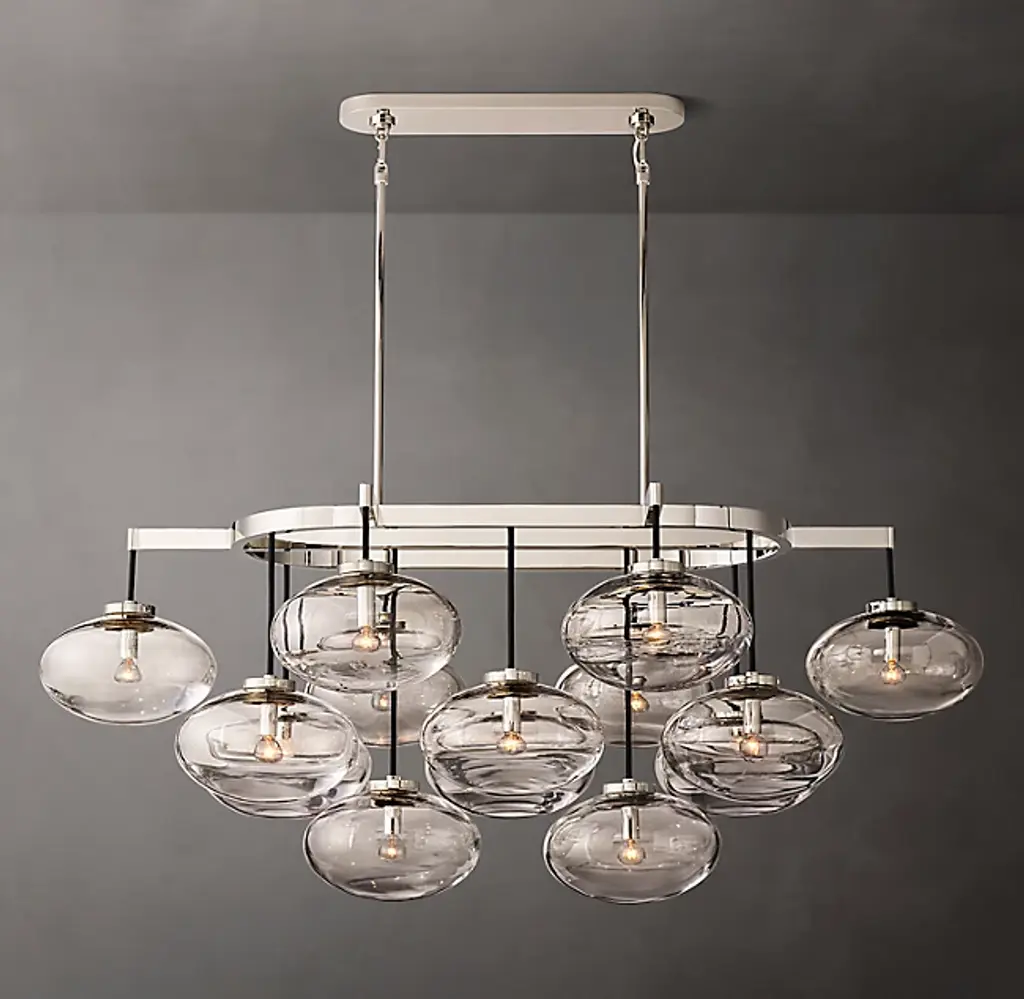 Handblown oval glass shades seem to float overhead in the Cabrette collection by San Francisco, California-based designer Jonathan Browning. Held by an industrial metal frame, the globes are suspended from black cords, marrying clean geometry with understated elegance.ALSO AVAILABLE IN AMBER GLASSSHOP THE ENTIRE COLLECTION