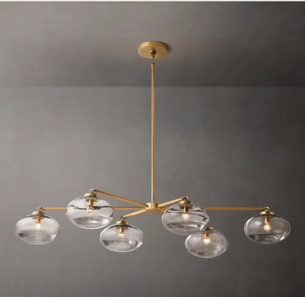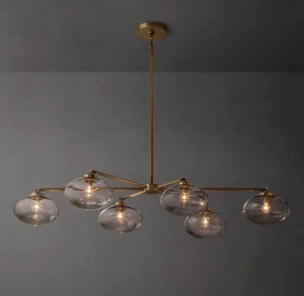 Handblown oval glass shades seem to float overhead in the Cabrette collection by San Francisco, California-based designer Jonathan Browning. The globes are suspended on hooks from slender metal arms, marrying clean geometry with understated elegance. SHOP THE ENTIRE COLLECTION