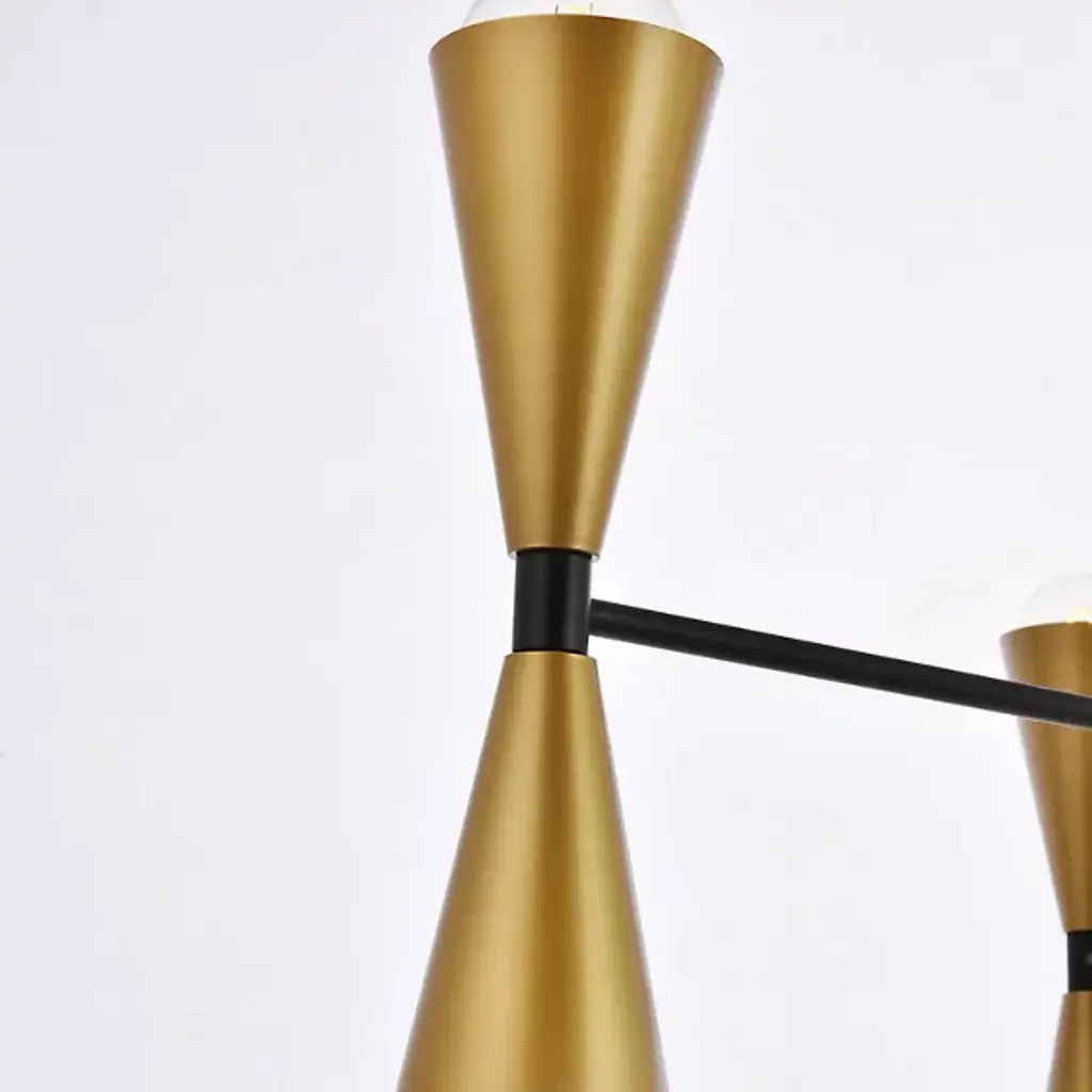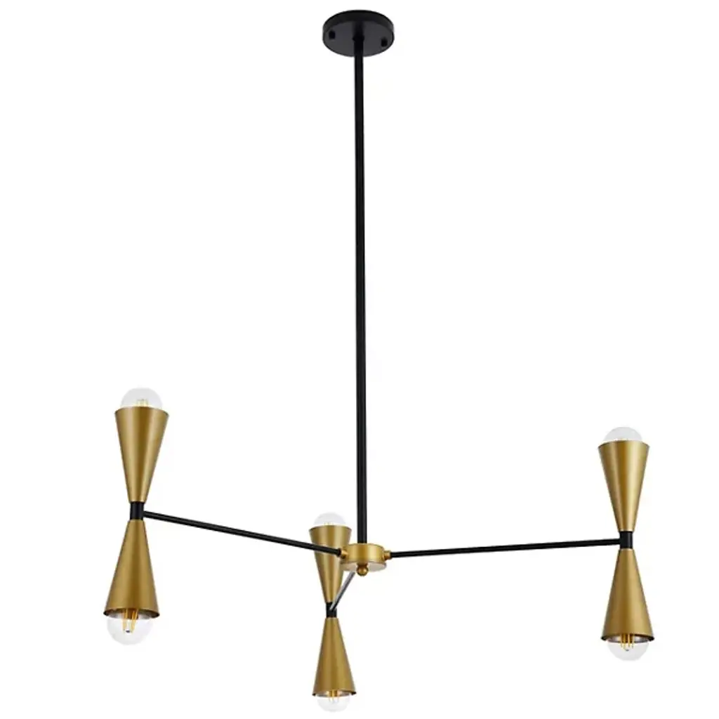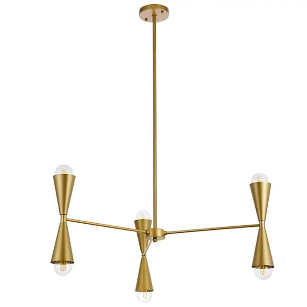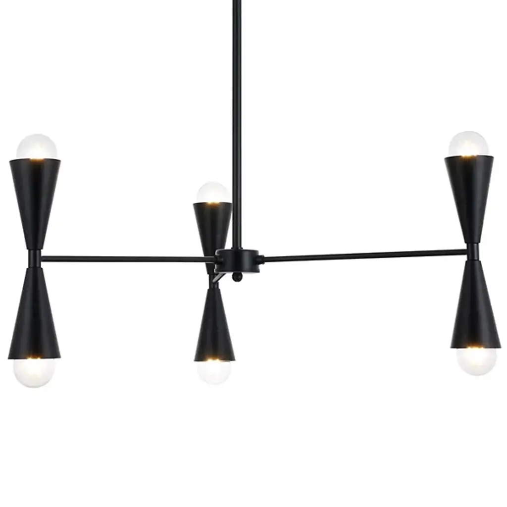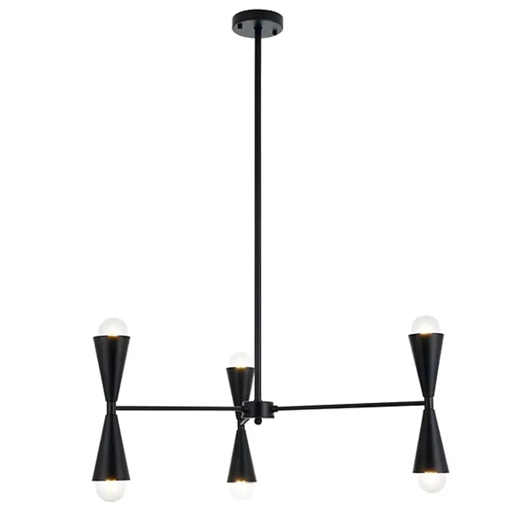 The Cade Chandelier from Elegant Lighting marries retro aesthetics with contemporary flair. This linear light features hourglass-shaped shades, each housing a light source at both ends. The symmetrical arrangement creates a visually remarkable balance, while the dual-ended shades offer both upward and downward illumination. The fixture's sleek outline makes it an ideal centerpiece for dining tables, kitchen islands, or long hallways. Its unique form draws the eye upward, adding vertical interest to spaces.