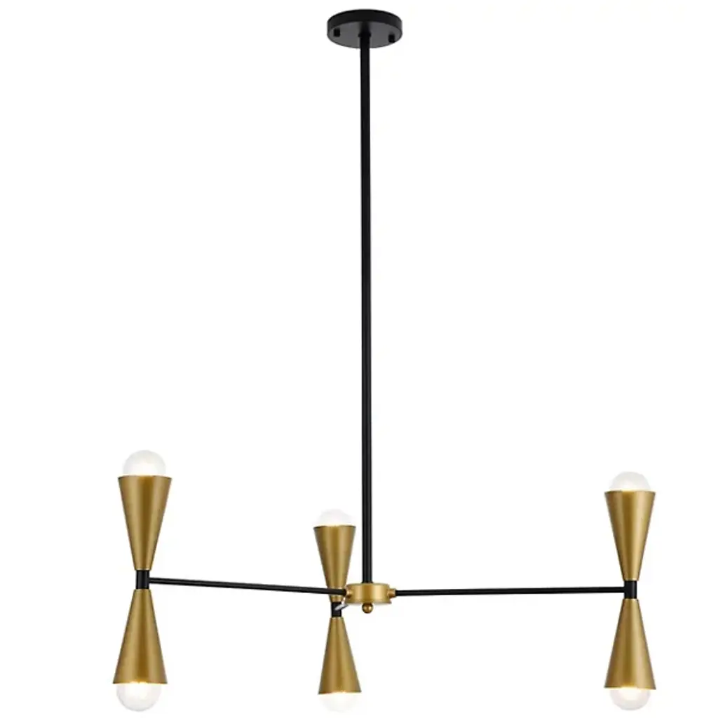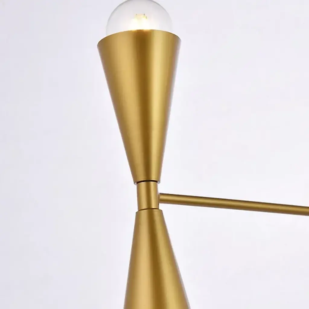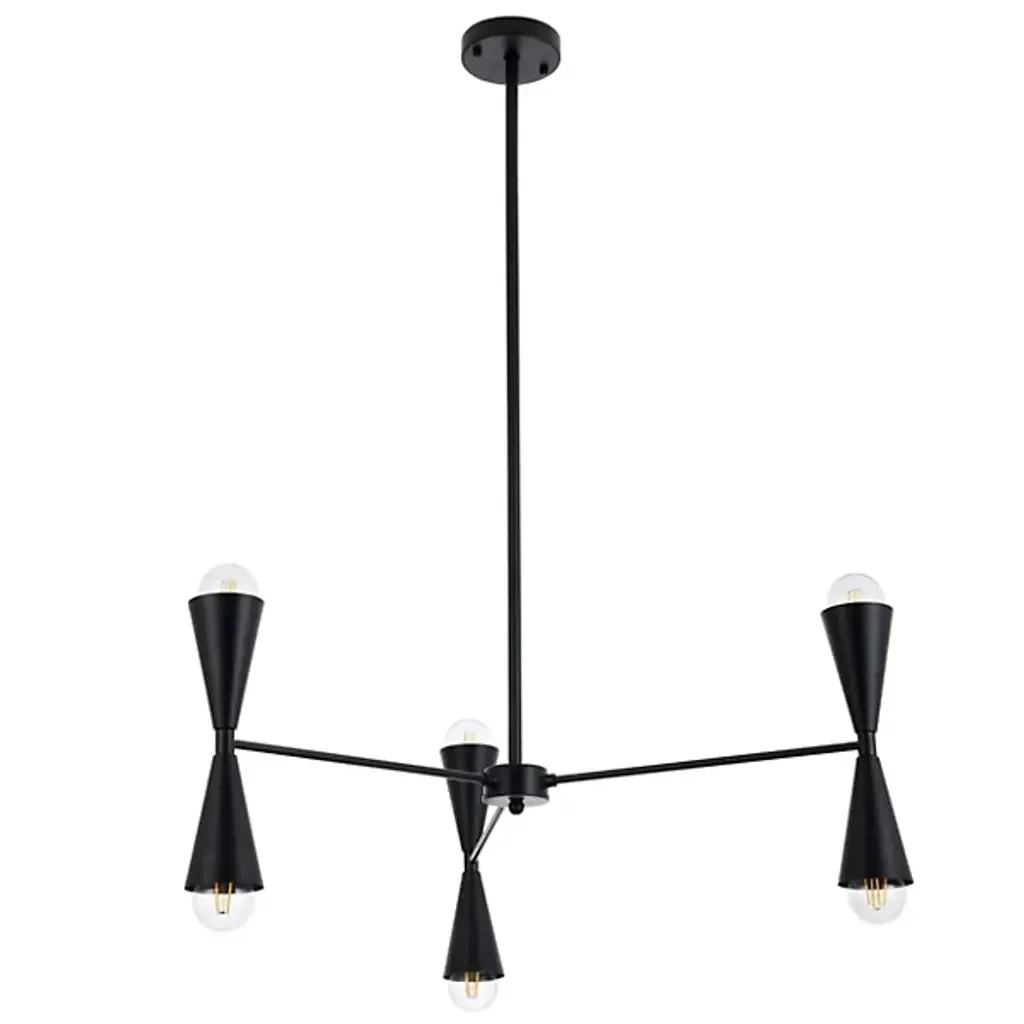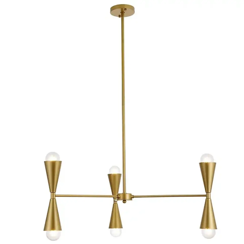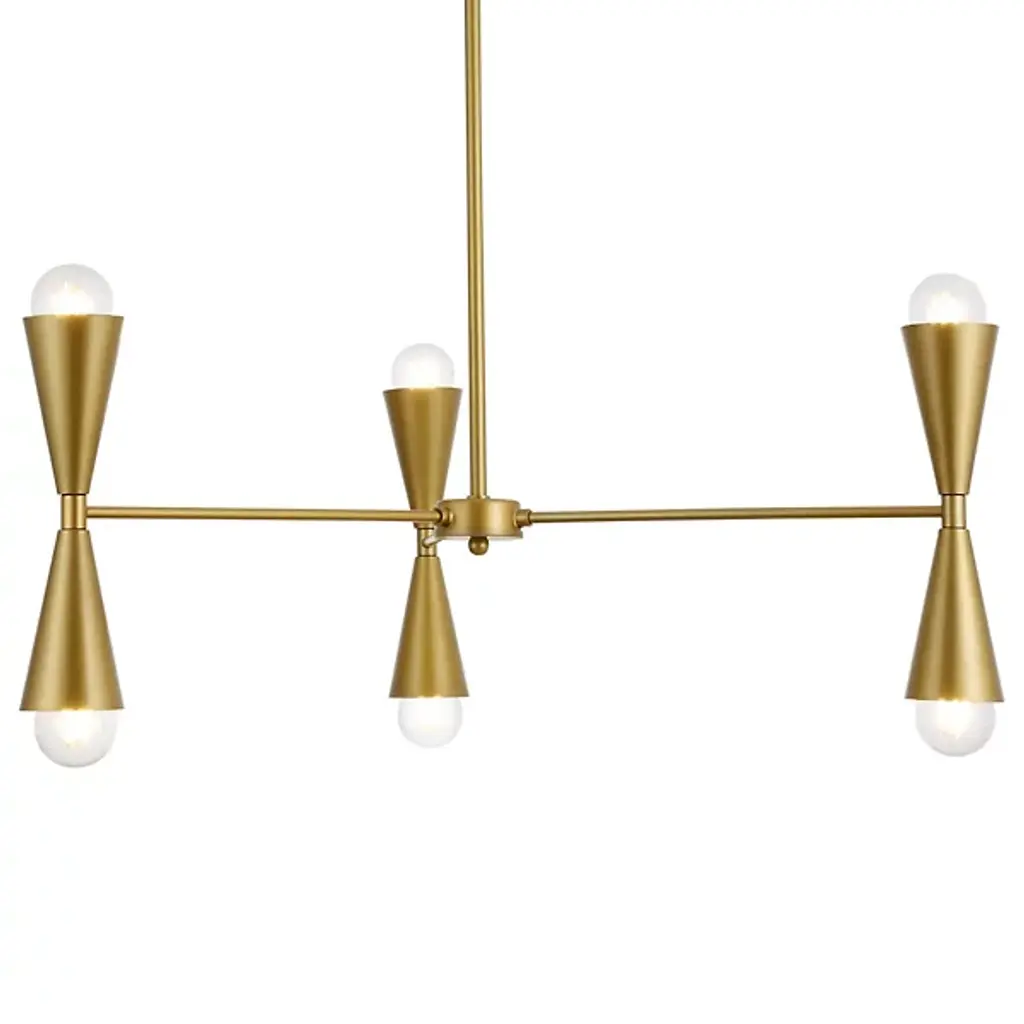 The Cade Chandelier from Elegant Lighting marries retro aesthetics with contemporary flair. This linear light features hourglass-shaped shades, each housing a light source at both ends. The symmetrical arrangement creates a visually remarkable balance, while the dual-ended shades offer both upward and downward illumination. The fixture's sleek outline makes it an ideal centerpiece for dining tables, kitchen islands, or long hallways. Its unique form draws the eye upward, adding vertical interest to spaces.