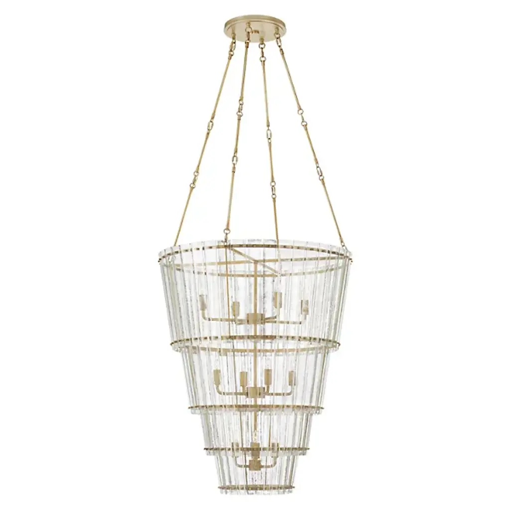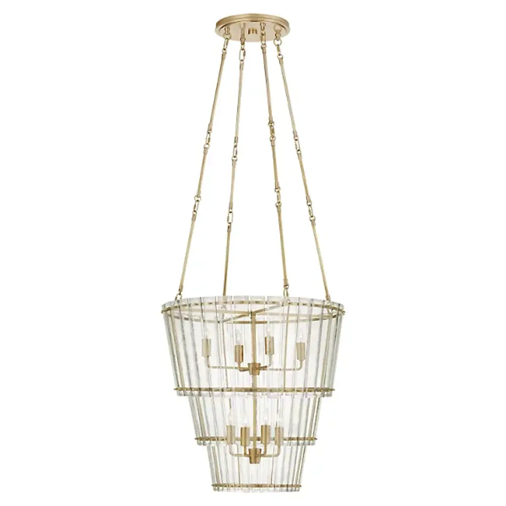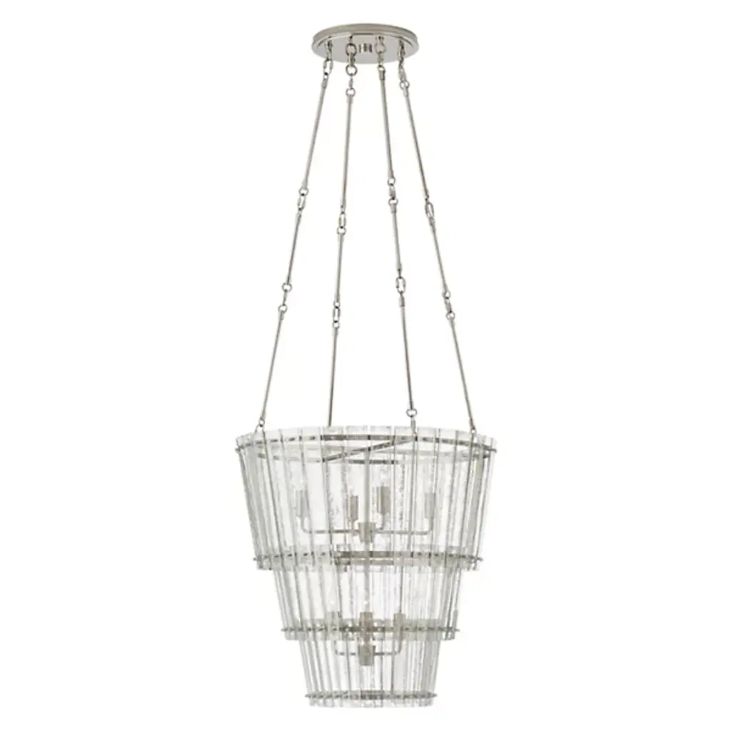 The Cadence Chandelier from Visual Comfort Signature is designed by Carrier and Company. Immerse your space in industrial elegance with this chandelier crafted from exquisite glass. Its dimmable feature, compatible with an ELV dimmer, allows you to adjust the brightness level. The chandelier’s tapered design delivers a tiered presentation accentuated by ribbed detailing. An opulent glow is achieved by the candelabra-style lamps, delicately perched on slender arms, illuminating your space from above.