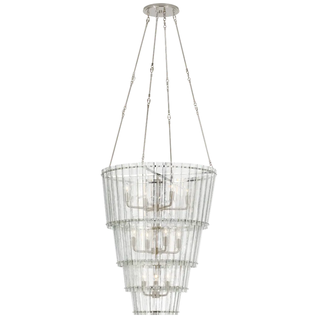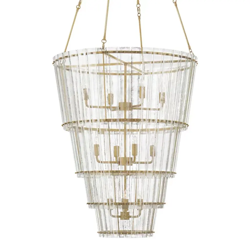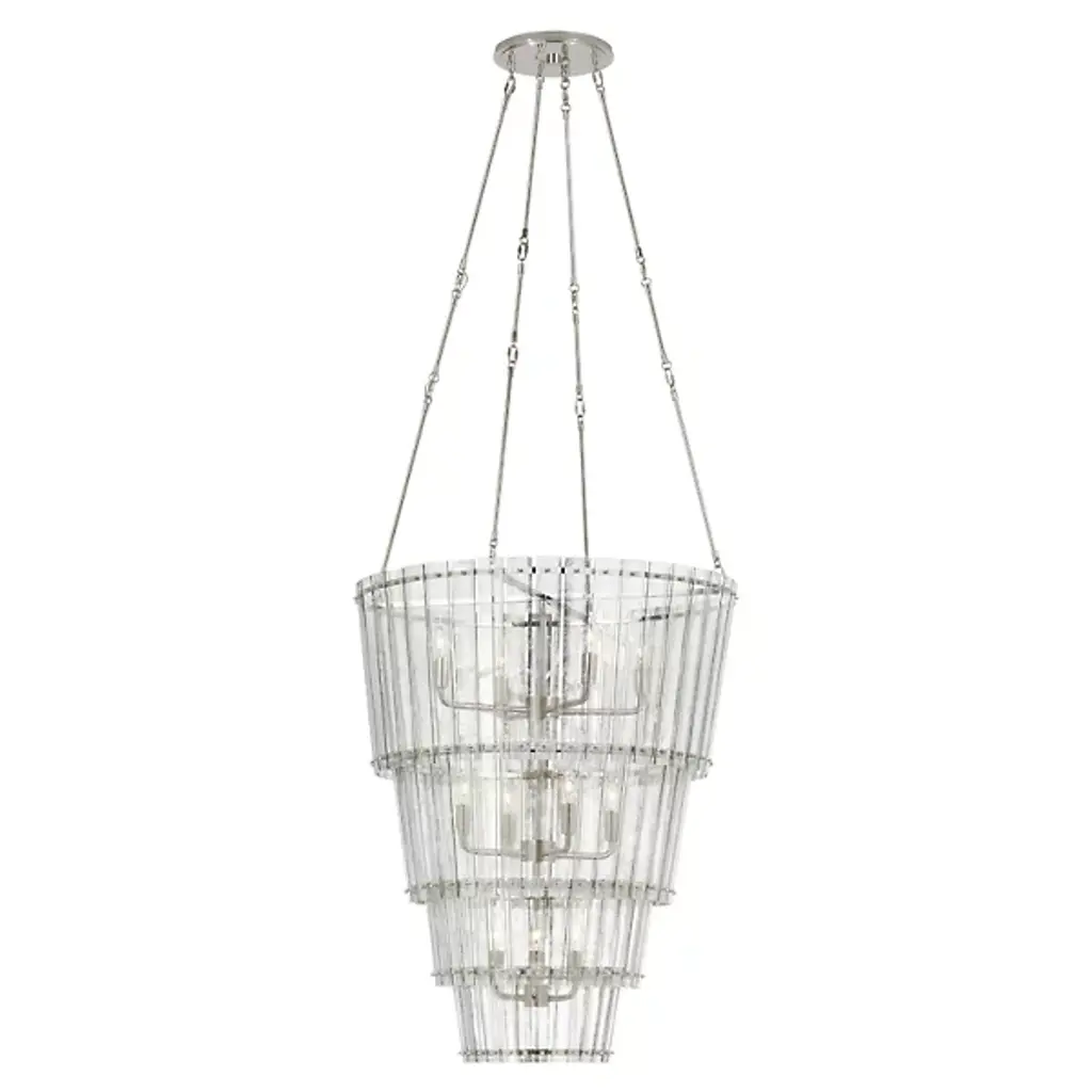 The Cadence Chandelier from Visual Comfort Signature is designed by Carrier and Company. Immerse your space in industrial elegance with this chandelier crafted from exquisite glass. Its dimmable feature, compatible with an ELV dimmer, allows you to adjust the brightness level. The chandelier’s tapered design delivers a tiered presentation accentuated by ribbed detailing. An opulent glow is achieved by the candelabra-style lamps, delicately perched on slender arms, illuminating your space from above.