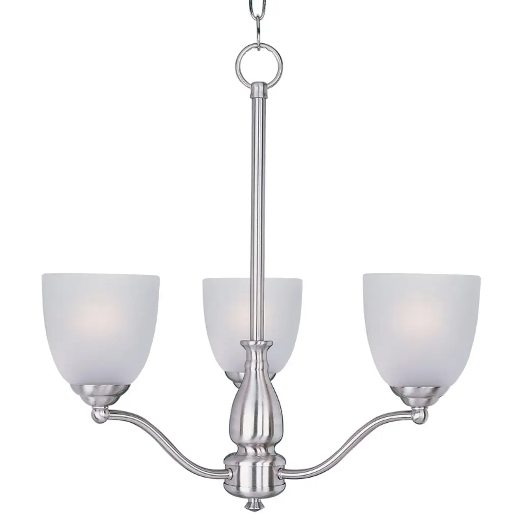 Traditional details and graceful lines provide modern elegance to any interior. The Cady three-light chandelier features etched glass shades with a Brushed Nickel finish.