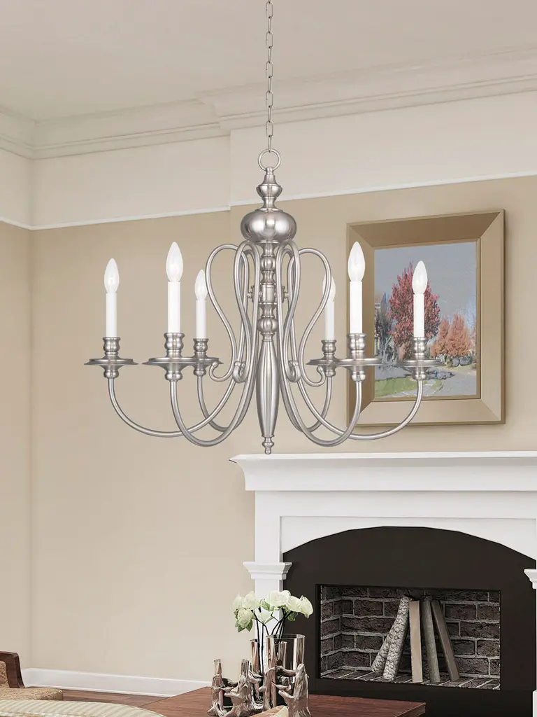 Caldwell 6 Light 30 Inch Brushed Nickel Chandelier Ceiling Light