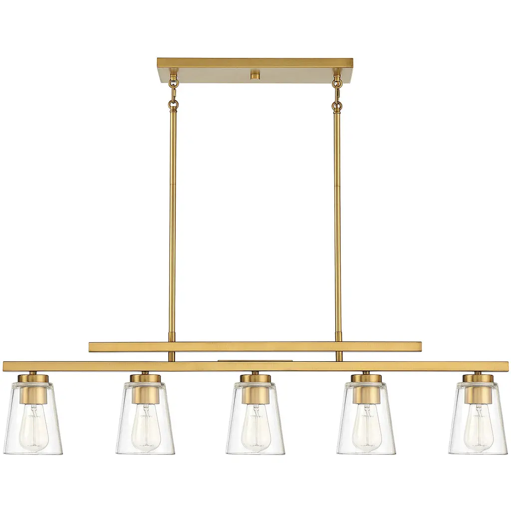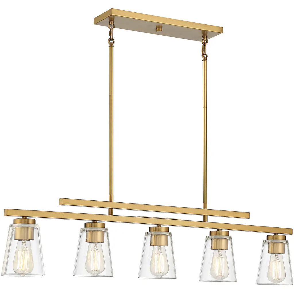 Calhoun 5 Light 40 Inch Warm Brass Linear Chandelier Ceiling Light, Essentials