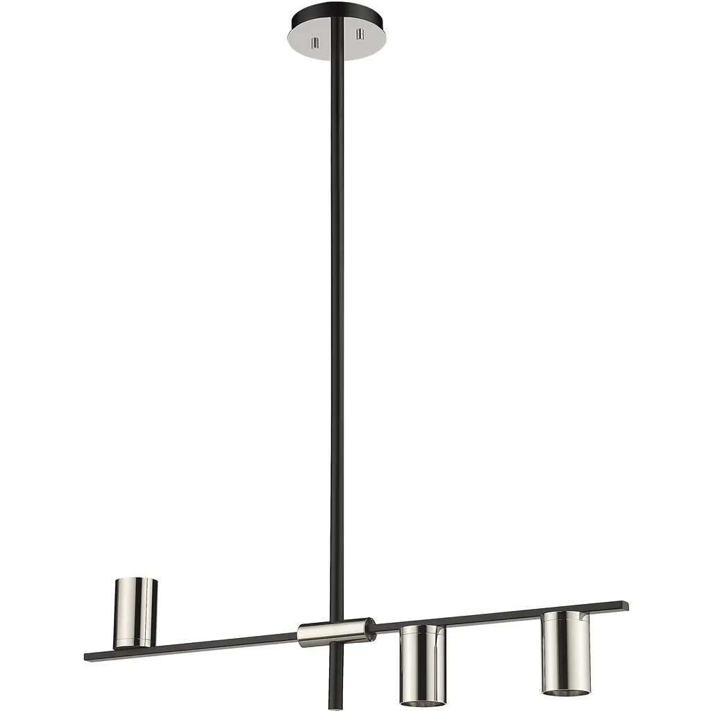 Calumet 3 Light 32 Inch Matte Black And Polished Nickel Linear Chandelier Ceiling Light
