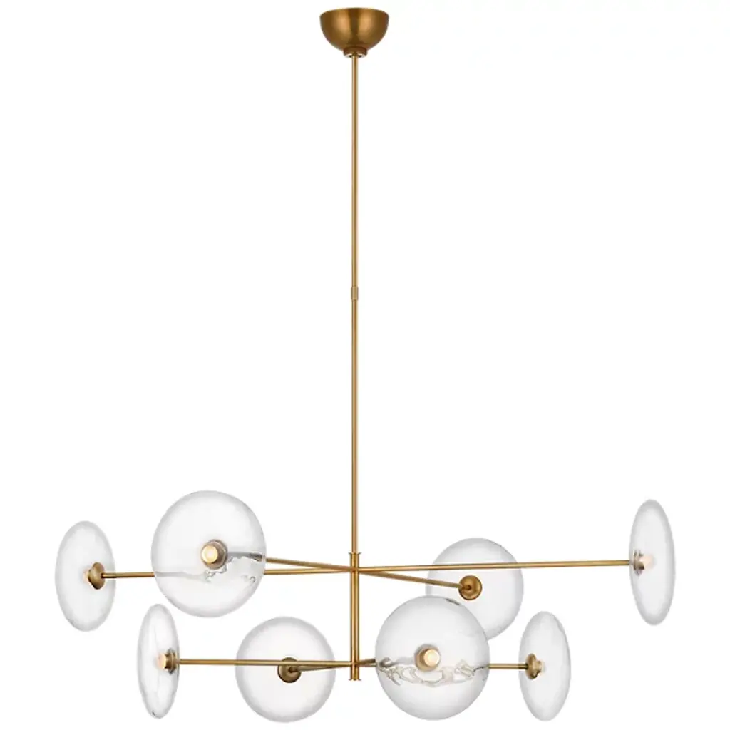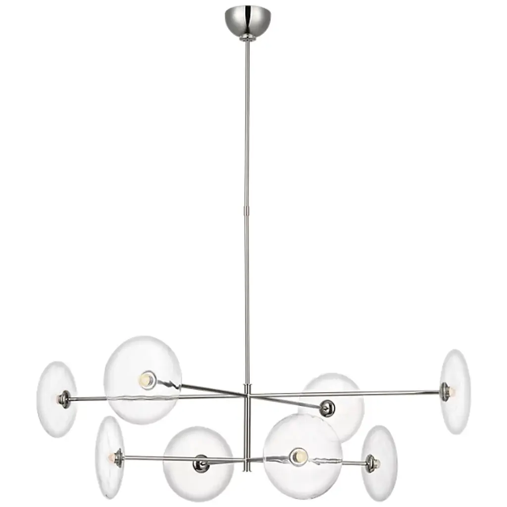 Presented by Visual Comfort Signature, the Calvino Radial LED Chandelier is a design by Ian K. Fowler. The chandelier features a series of glass discs, serving as diffusion for an eco-friendly integrated flow of LED illumination. Each intersecting arm of the chandelier's expertly crafted metalwork radiates light from its tips, creating a mesmerizing display. The entirety of the composition suspends gracefully from a minimally styled down rod and canopy, allowing the chandelier to take center stage and become a focal point worthy of first impressions.