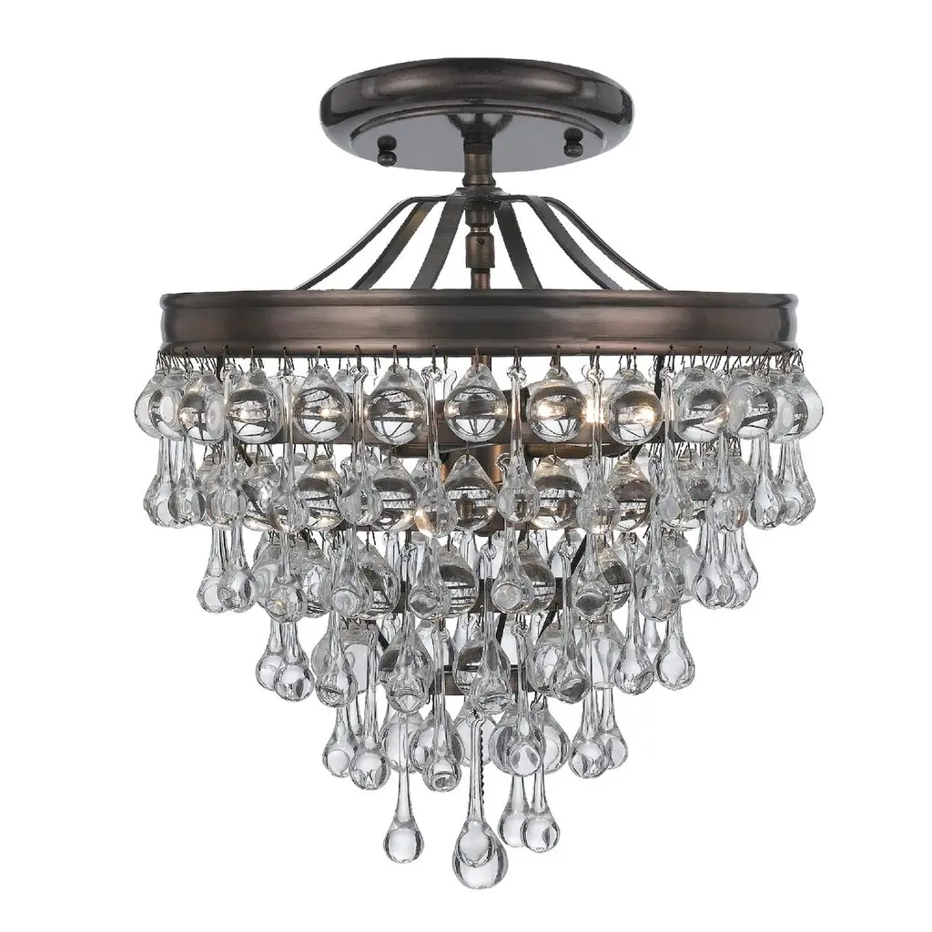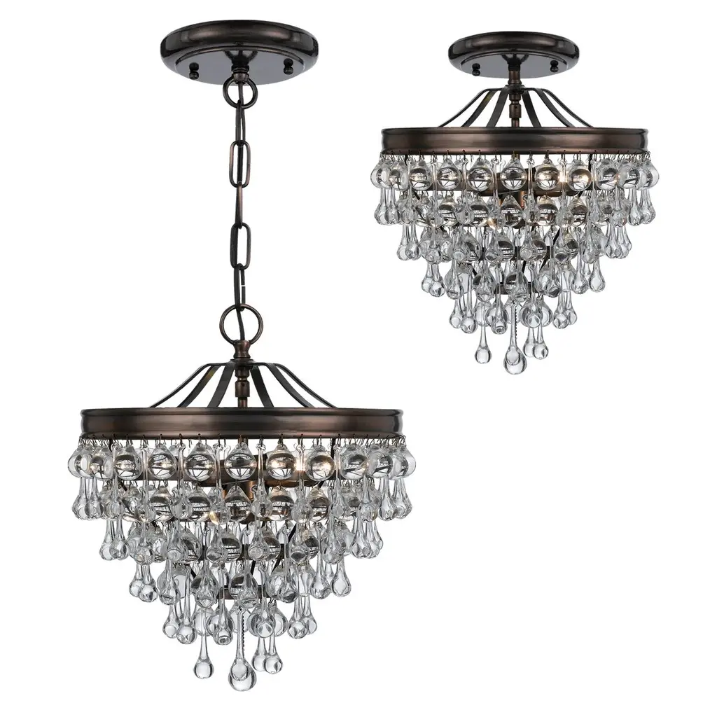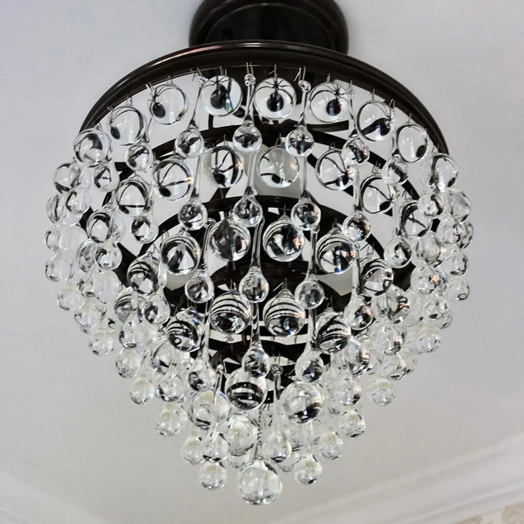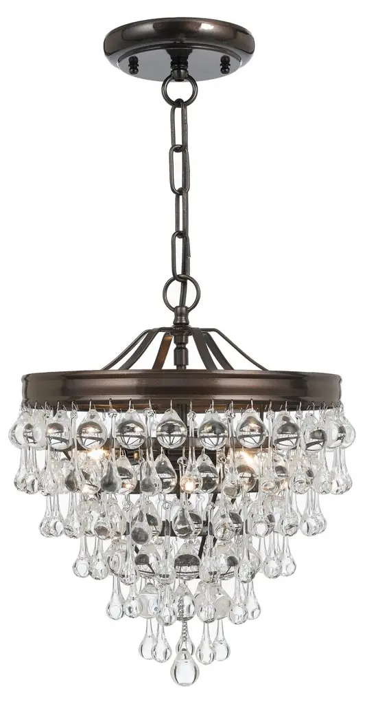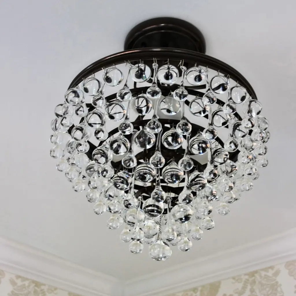 Ideal for bringing grandeur and glamour to a compact room, this pendant is only a foot wide, but it glimmers with scores of smooth glass balls in an array of sizes descending from the frame. Hardwired.