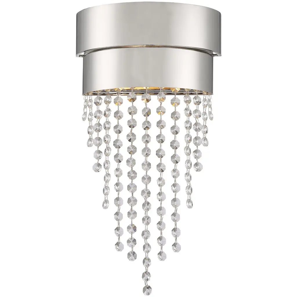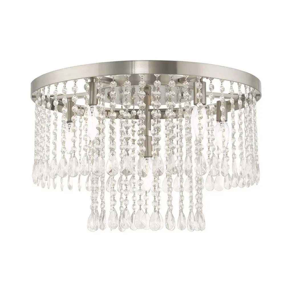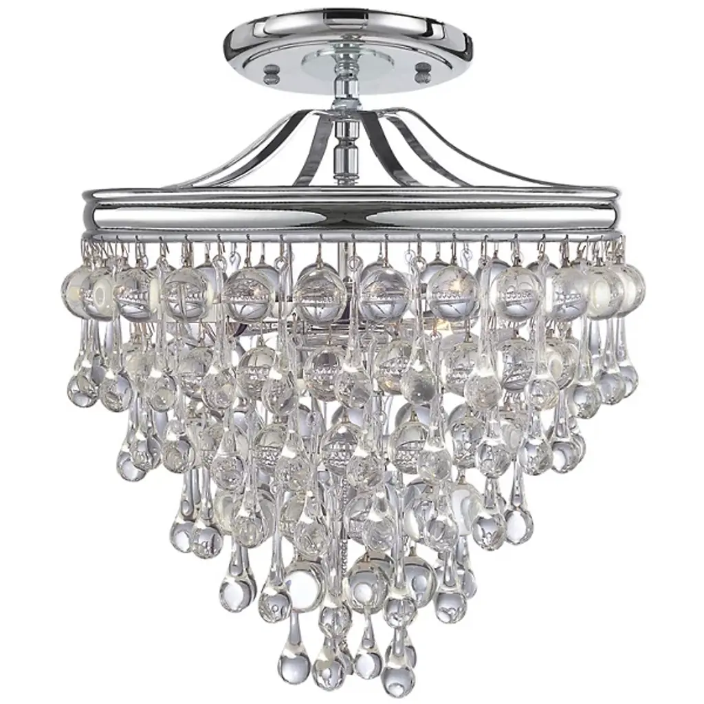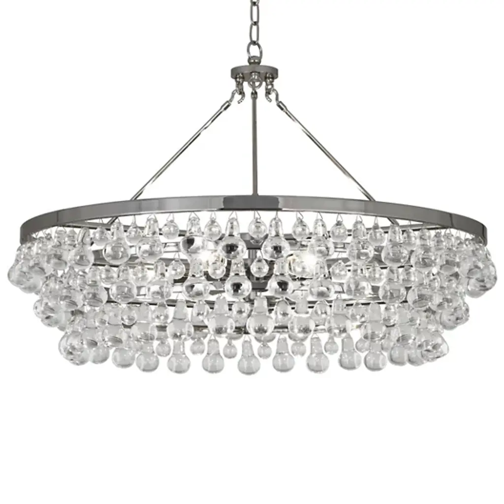 This glamorous chandelier glimmers with scores of clear glass balls and teardrops descending from a gleaming fixture. Hardwired.