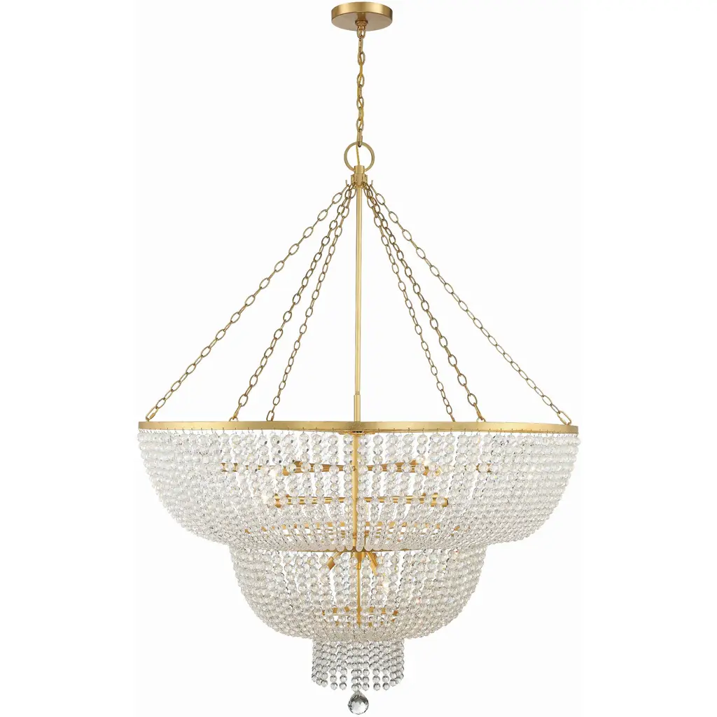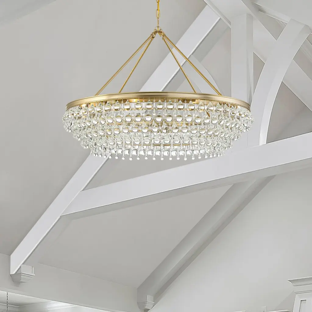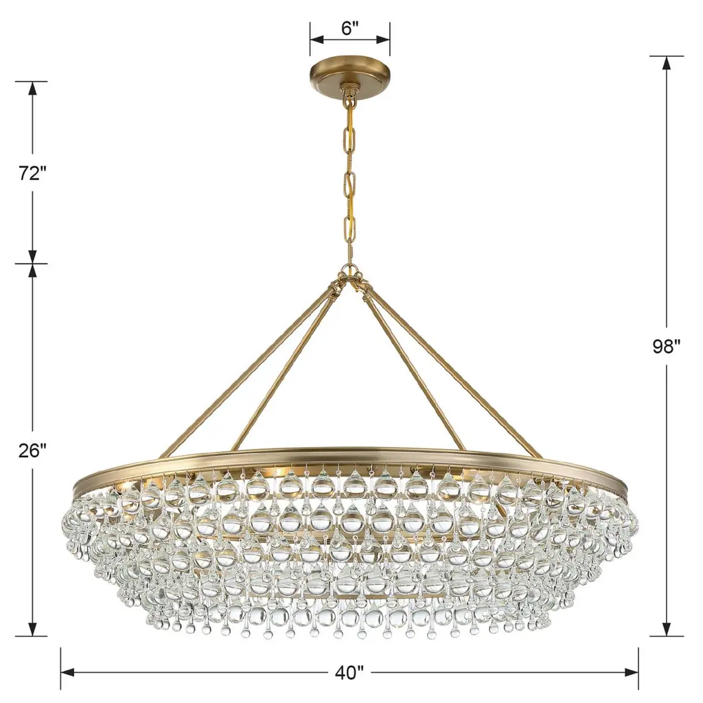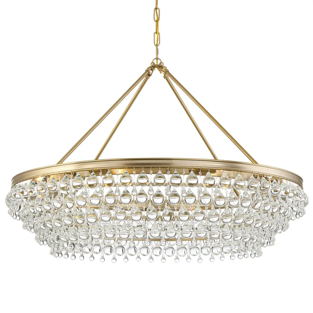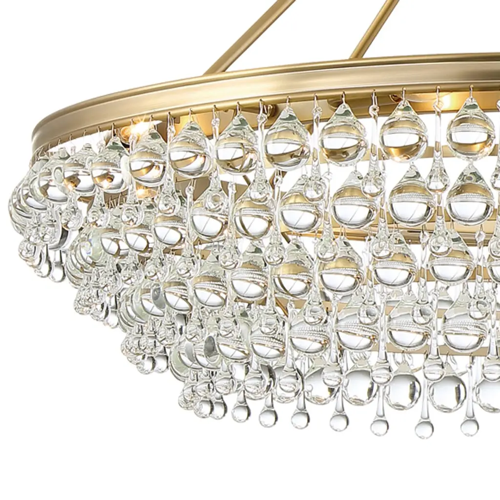 This glamorous chandelier glimmers with scores of clear glass balls and teardrops descending from a gleaming fixture. Hardwired.