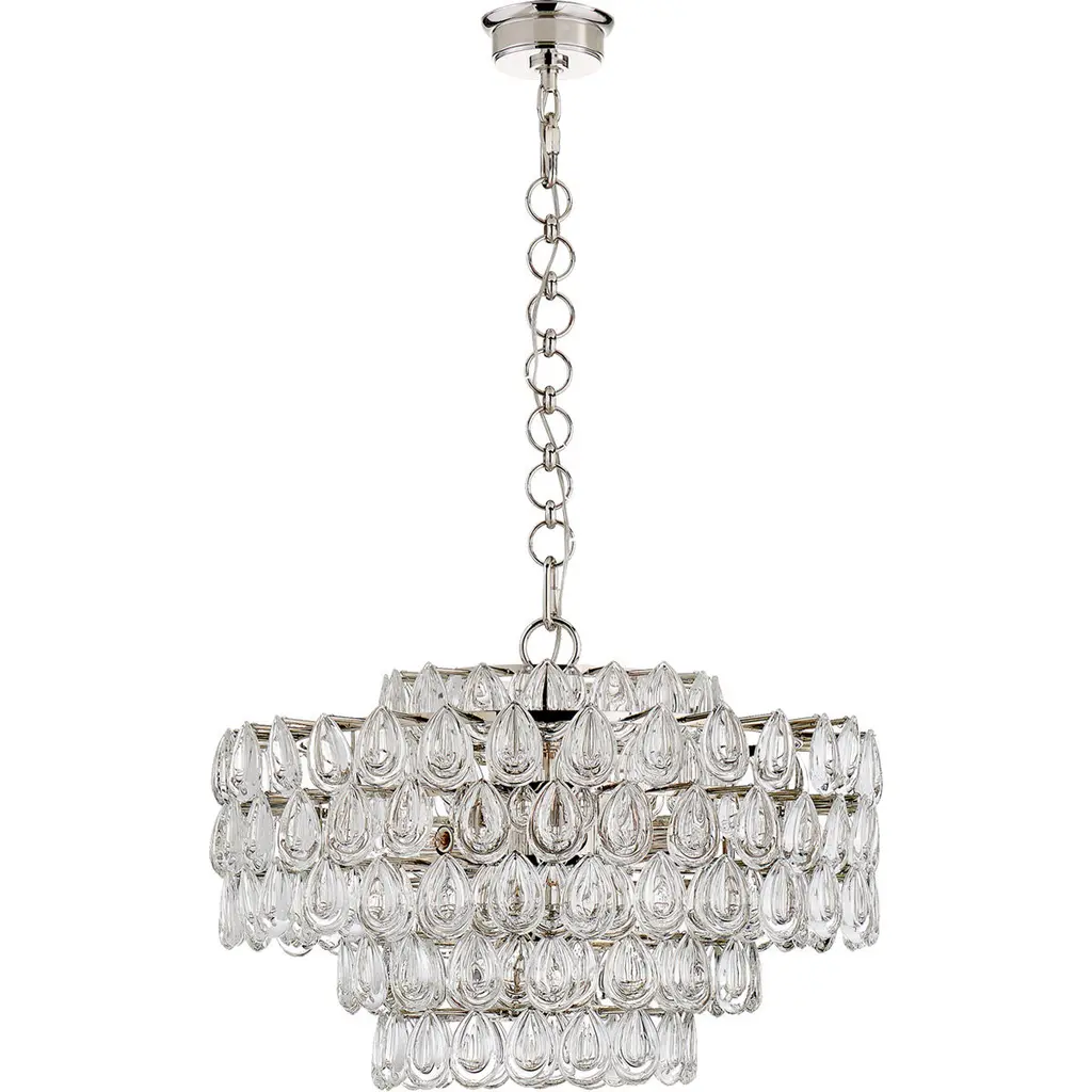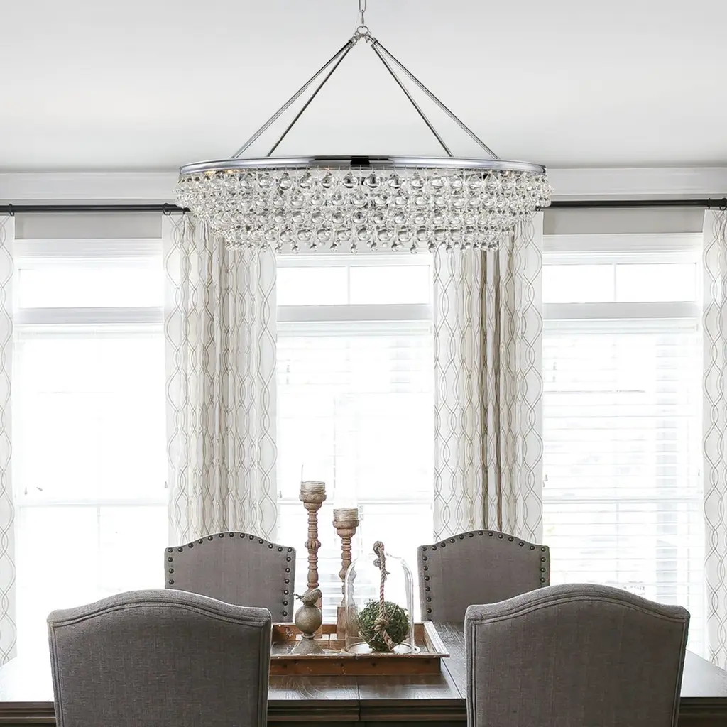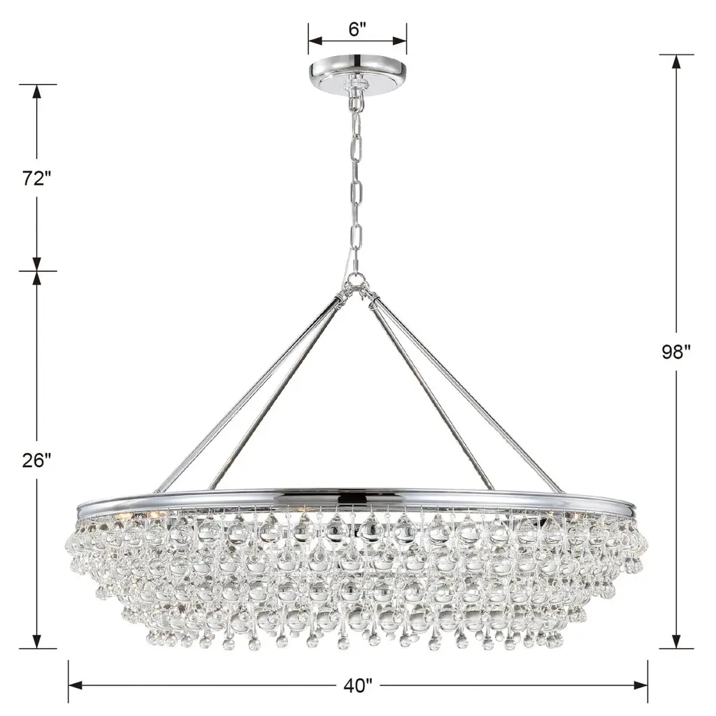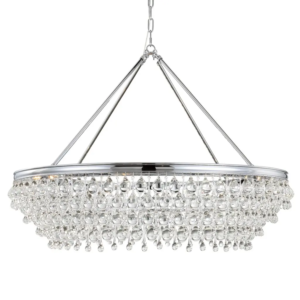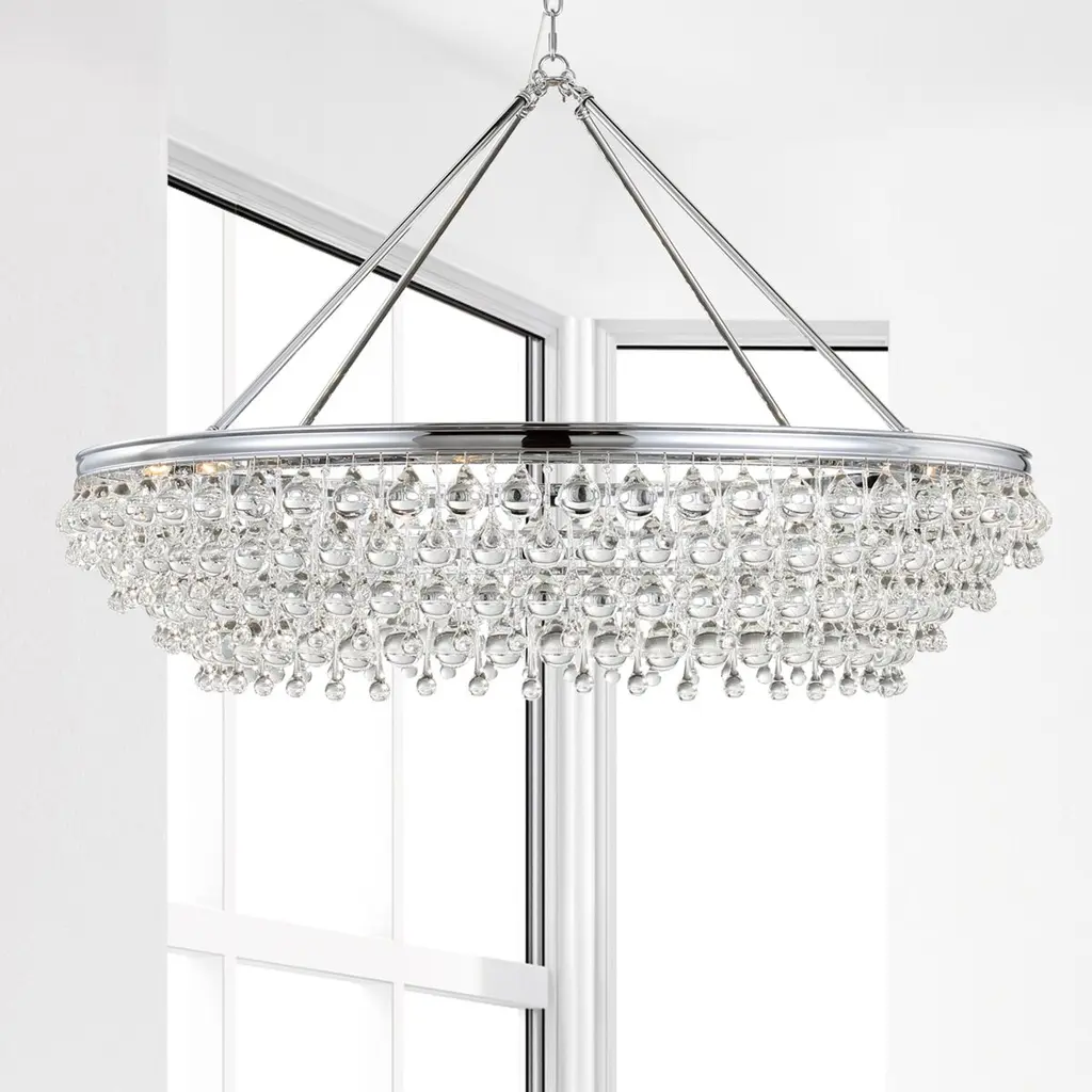 This glamorous chandelier glimmers with scores of clear glass balls and teardrops descending from a gleaming fixture. Hardwired.