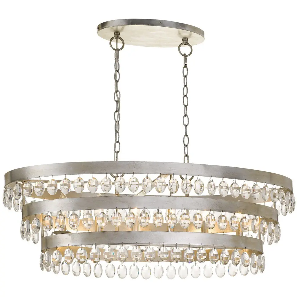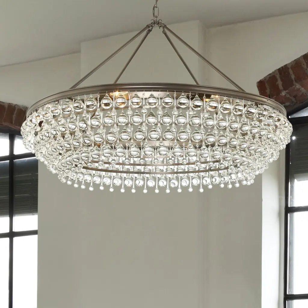 This glamorous chandelier glimmers with scores of clear glass balls and teardrops descending from a gleaming fixture. Hardwired.